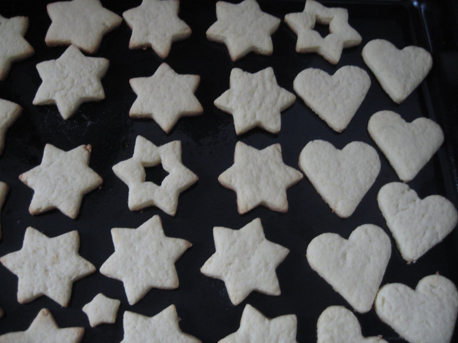 Din aluat se decupeaza diferite forme, eu am optat azi pentru stelute si inimioare