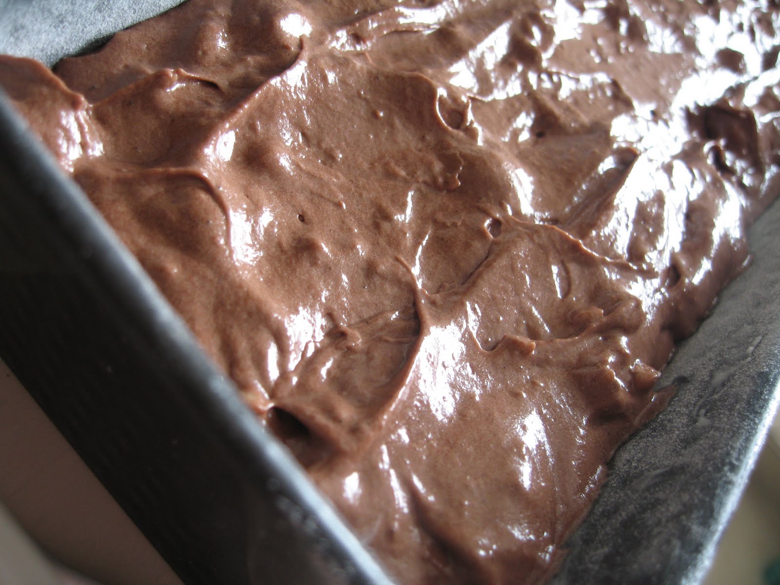 se amesteca totul usor cu lingura, apoi se pune totul intr-o tava de chec unsa cu unt si tapetata cu faina. Eu am avut o tava mare de chec.