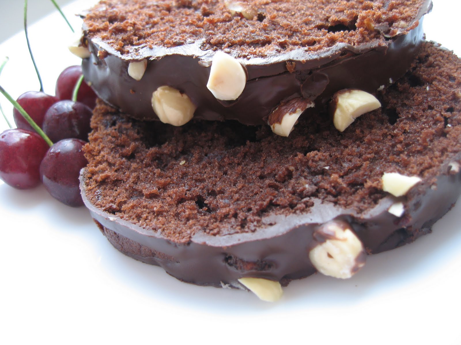 se prajesc usor, se lasa la racit, apoi se curata de coaja si se toaca in bucati mai mari; se adauga compozitiei de mai sus impreuna cu ciresele fara samburi