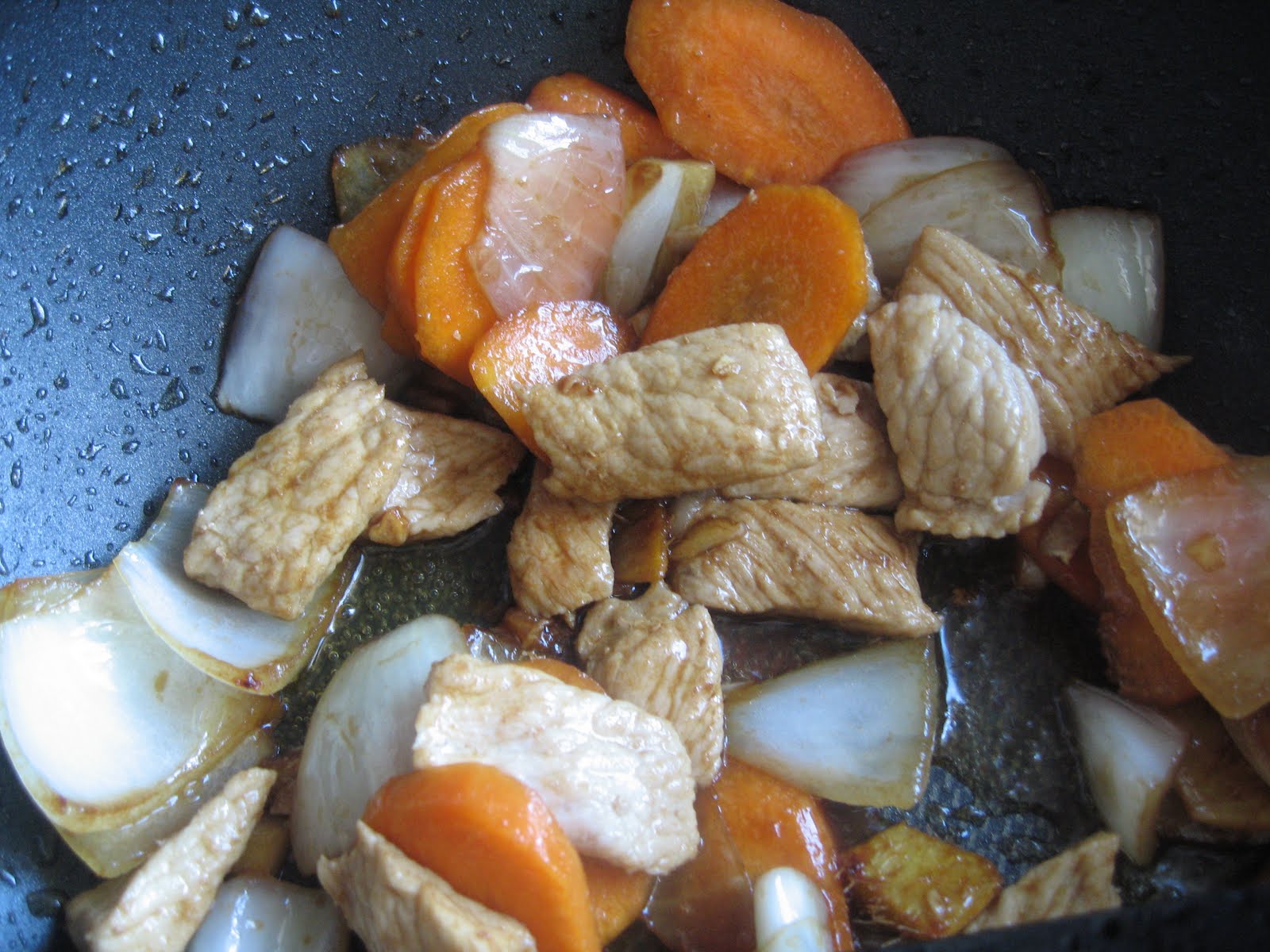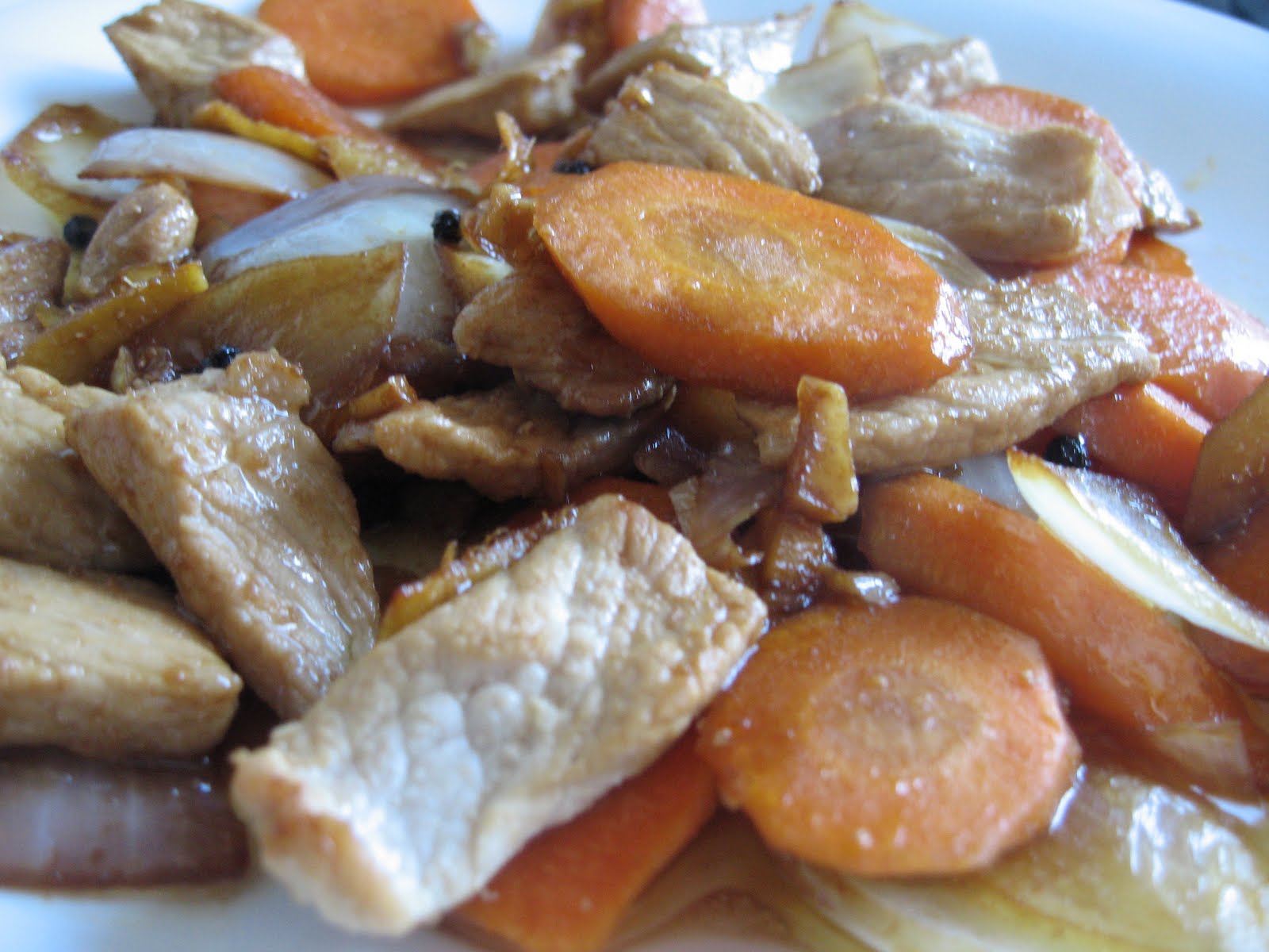 Porc cu morcovi si ceapa face parte din categoria mancarurilor chinezesti non-spicy. Daca aveti la masa copii sau persoane care nu mananca iute, atunci poate ar fi bine sa pregatiti si acest fel de mancare, o sa aveti parte numai de aprecieri!Chiar daca contine si piper, acest fel de mancare nu va fi iute. Aici, piperul intreg are doar rolul de a da aroma mancarii.