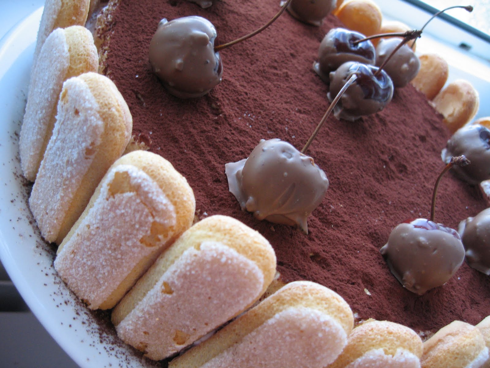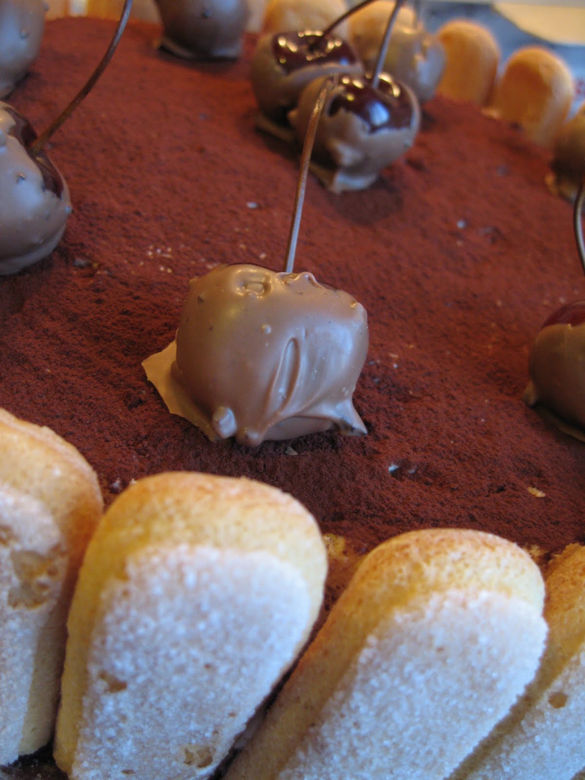 am pus deasupra si ciresele date prin ciocolata si cam asta a fost