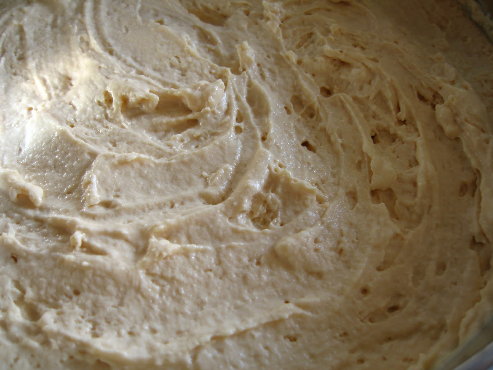Am mixat foarte bine frisca rece de la frigider impreuna cu zaharul pudra