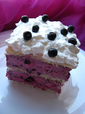 am lasat astfel prajitura mea la frigider 3 ore, apoi am ornat-o cu frisca si afine proaspete.