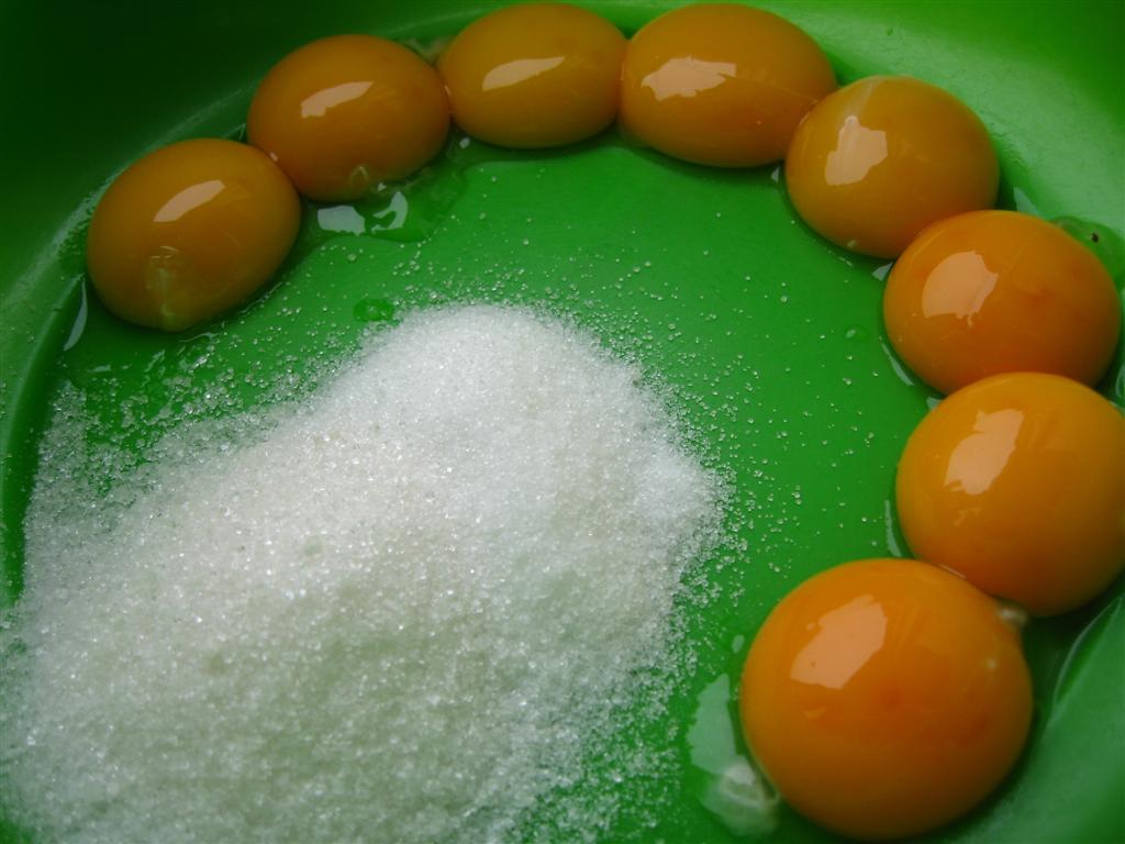 intr-un castron mai mare, pui galbenusurile si peste ele pui zaharul si zaharul vanilat