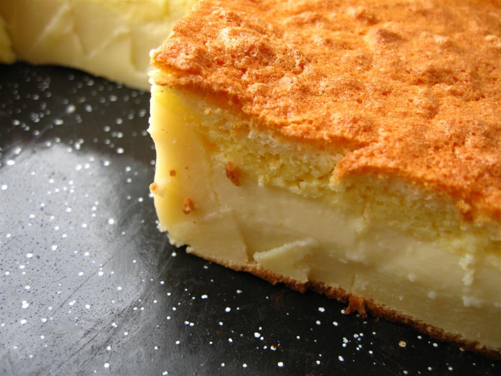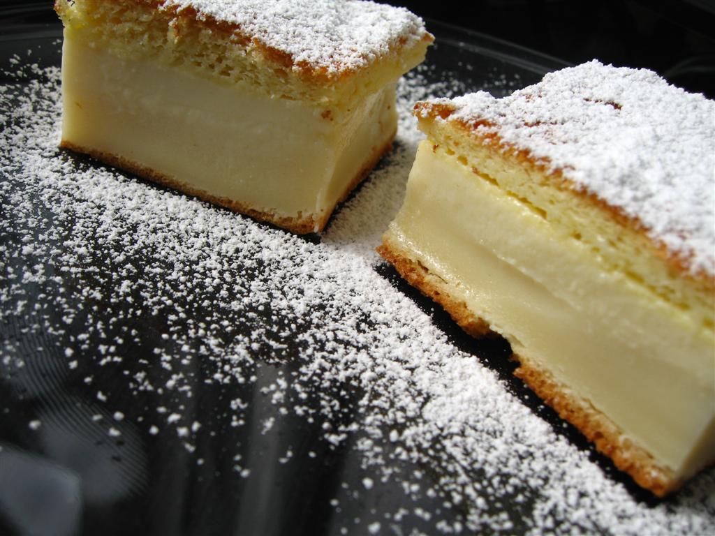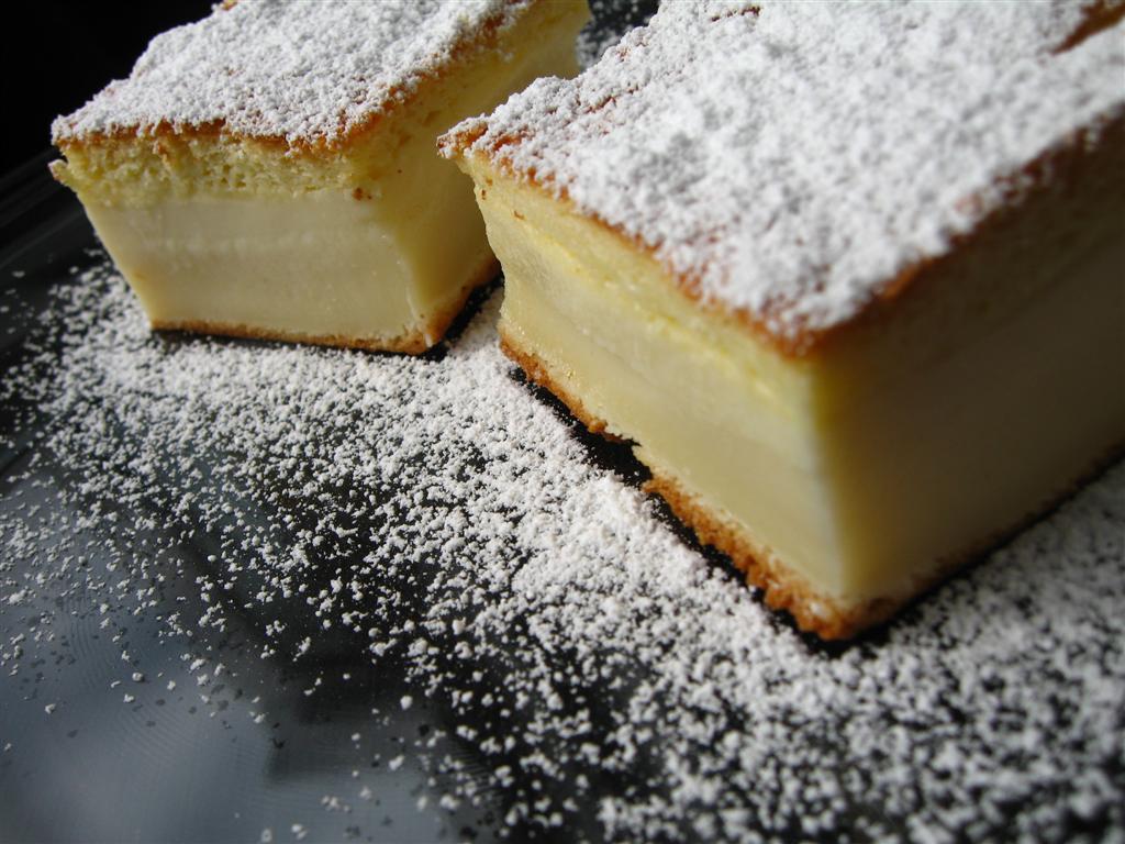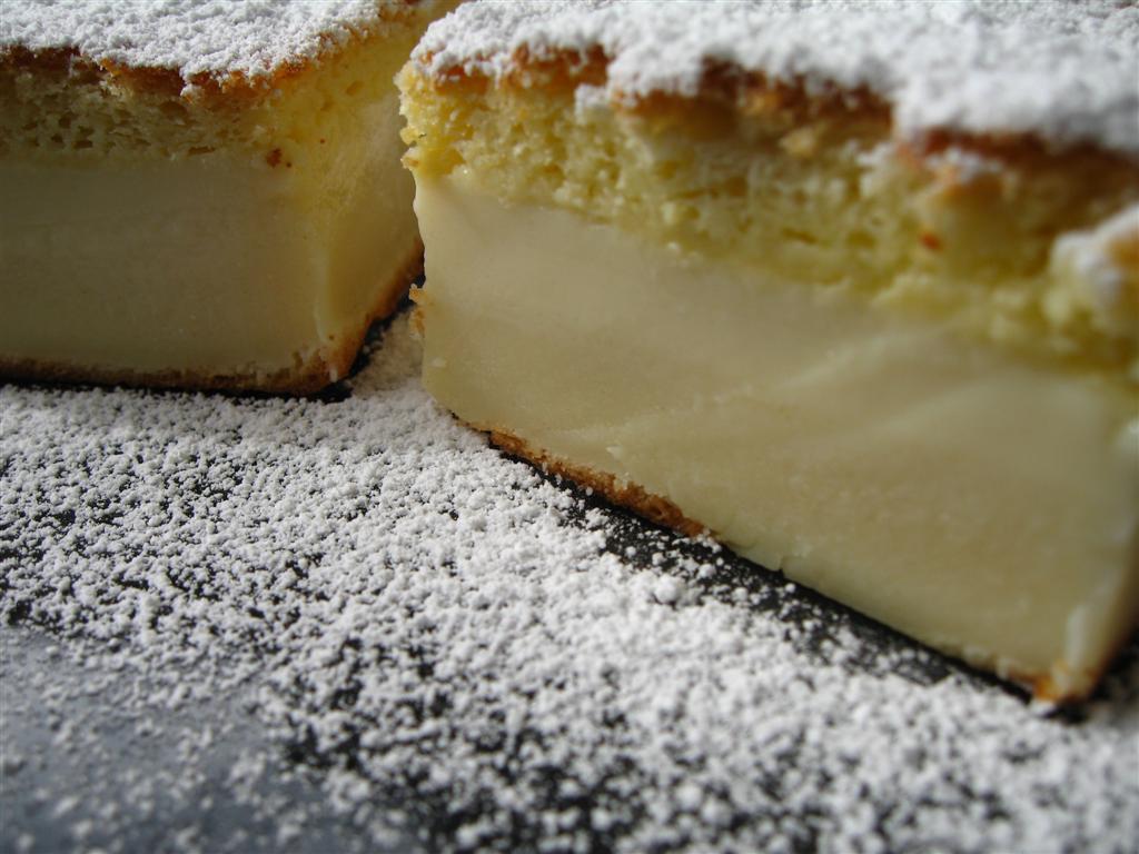 Ei, da, stiu, e netul plin de prajitura din asta, dar am zis, why not? hai sa o incerc si eu! Si pe bune ca nu-mi pare rau! Eu as numi-o mai degraba Prajitura harnica.Toata lucratura la ea nu dureaza mai mult de 20 de minute (mai dureaza coptul ei vreo 45 de minute, dar nu muncesti, ci doar o pazesti, nici macar nu te obosesti sa deschizi usa cuptorului), are ingrediente de baza ale unei prajituri, nu trebuie sa alergi dupa ele pe nu stiu unde ca sa le gasesti si nici nu e rocket science ca sa o faci. Desteapta e pentru ca noi o turnam fara mila intr-o tava, iar ea, draguta de ea, face o magie si ne scuteste de munca si migala reusind sa-si construiasca singura un blat micut, fin si delicat, o crema supercremoasa care nu curge, nu se imprastie, nu se taie, nu se arde, si din nou un blat un piiiicut mai groscior decat cel de la baza, si mai pufos si mai fin si mai delicat decat precedentul. Gustul? O bunatate! Da, are un gust aparte de budinca, sau de crema delicioasa cu aroma de copilarie.