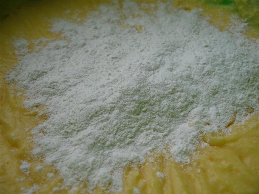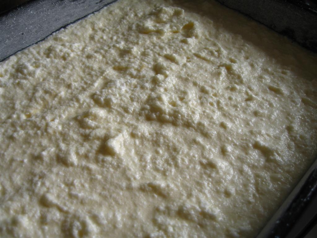 obtii o compozitie cam ca o smantana, nu te speria caci asa trebuie sa si fie, o torni in tava unsa cu unt si tapetata cu faina exact asa cum este