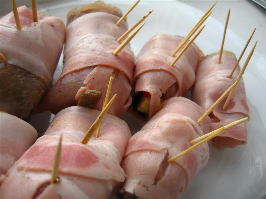 rulam fileul de pui strans, apoi il invelim intr-o fasie de bacon