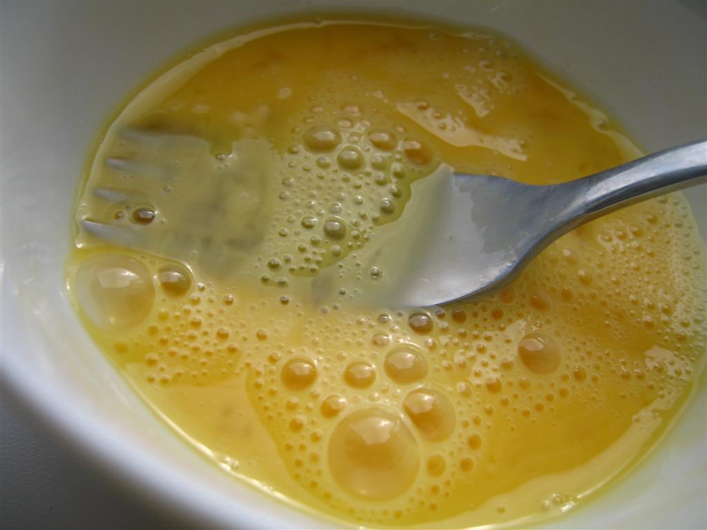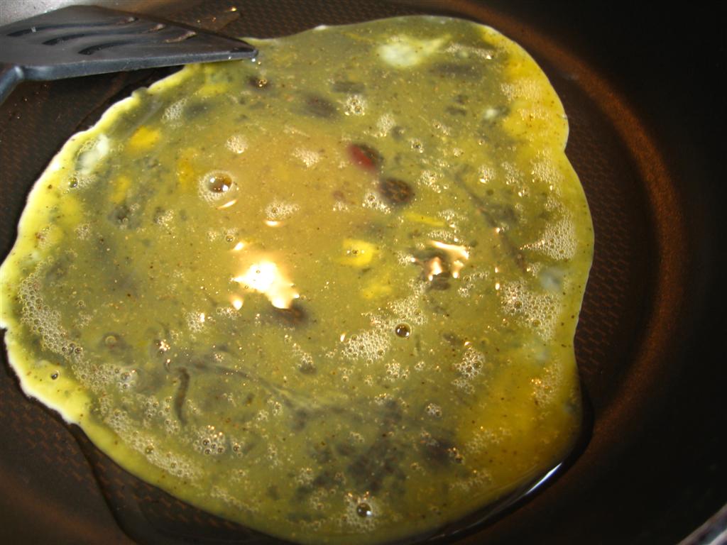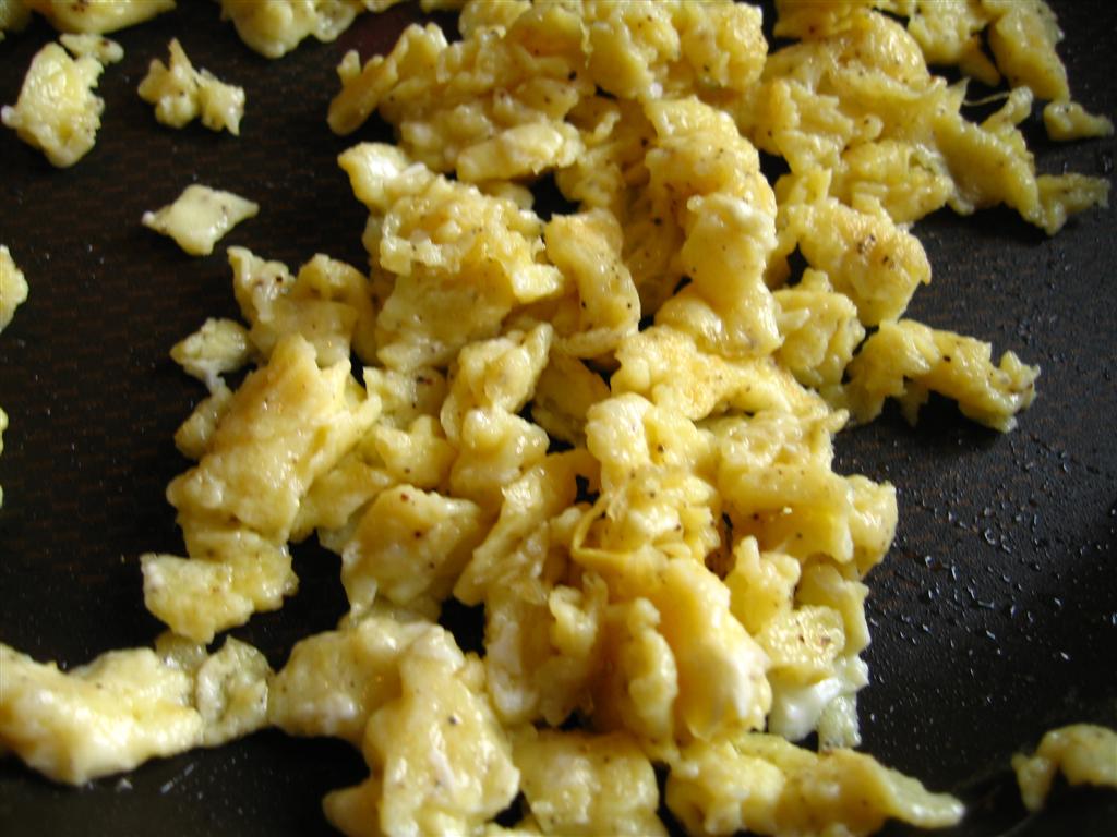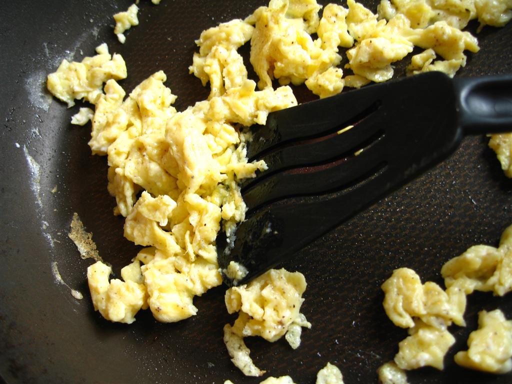 imediat incepem sa il amestecam cu spatula pana obtinem mici bucatele de omleta