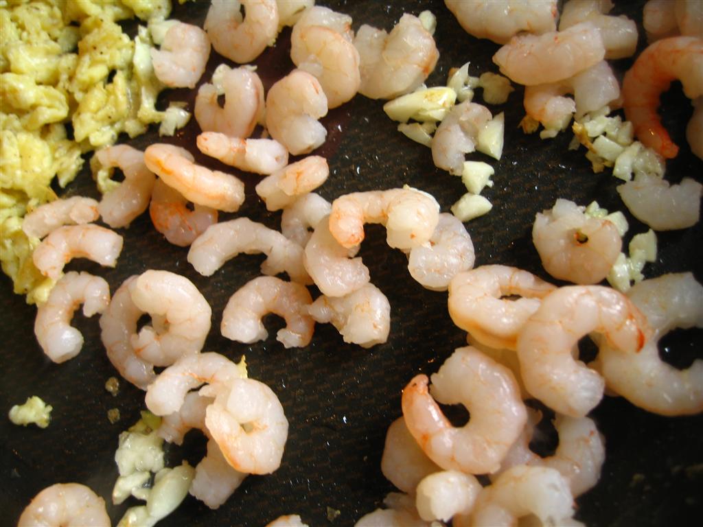 adaugam usturoiul, il calim cateva secunde, apoi imediat punem si crevetii, lasam la calit pana capata acea culoare roz-portocalie placuta,