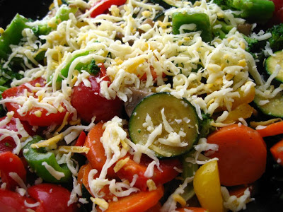 peste ele am presarat cascavalul ras, am amestecat din nou bine