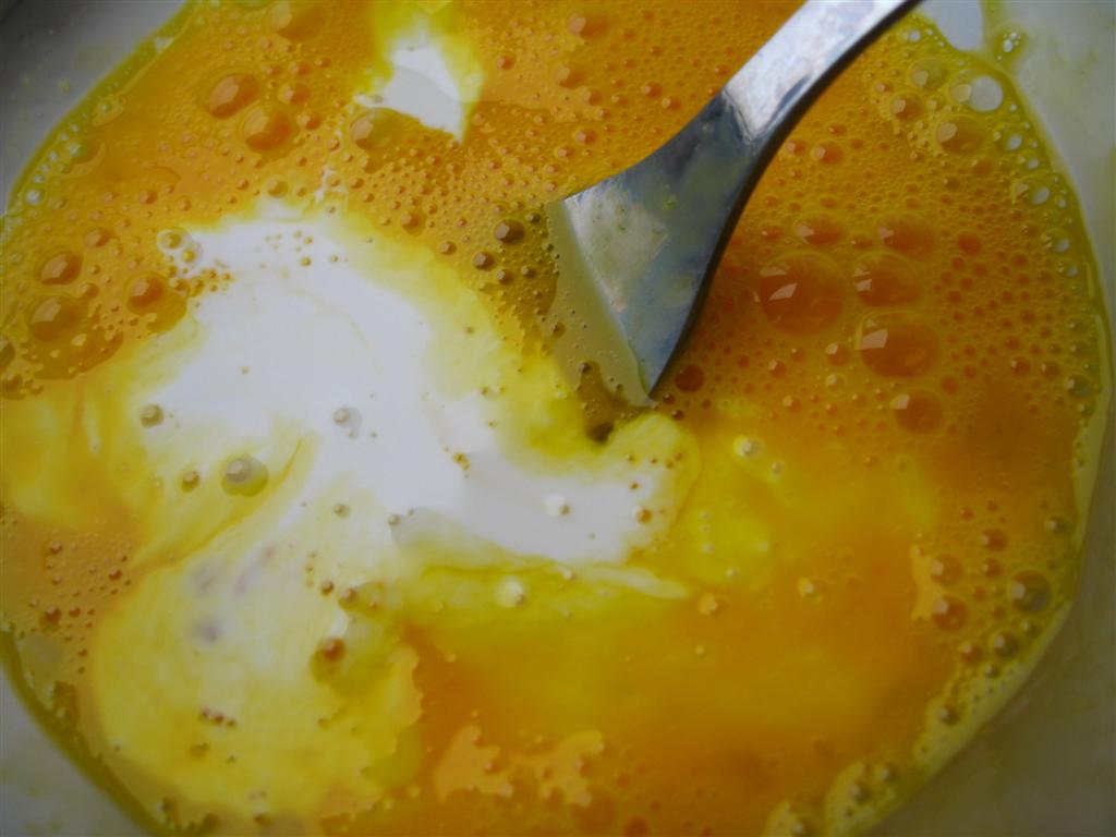 ( am pus legumele la calit foarte putin, numai cat sa se inmoaie usor de tot, le-am calit ca sa nu isi lase zeama la copt , dar se si pot fierbe), apoi am adaugat peste ele un ou si am amestecat bine