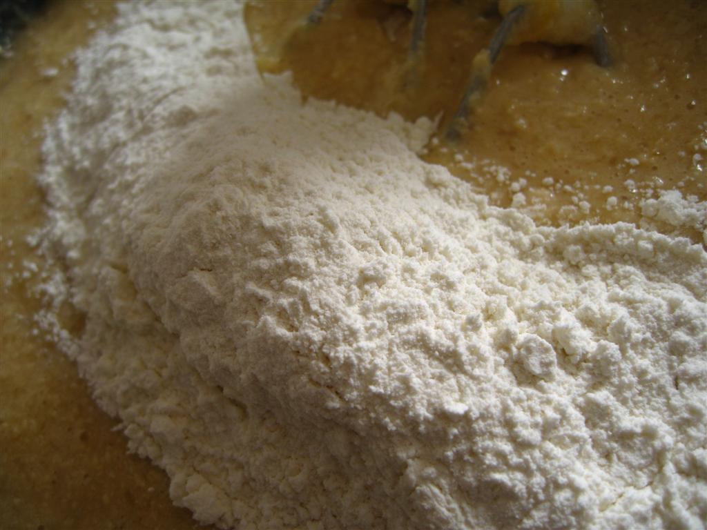 apoi am turnat amestecul de ingrediente uscate