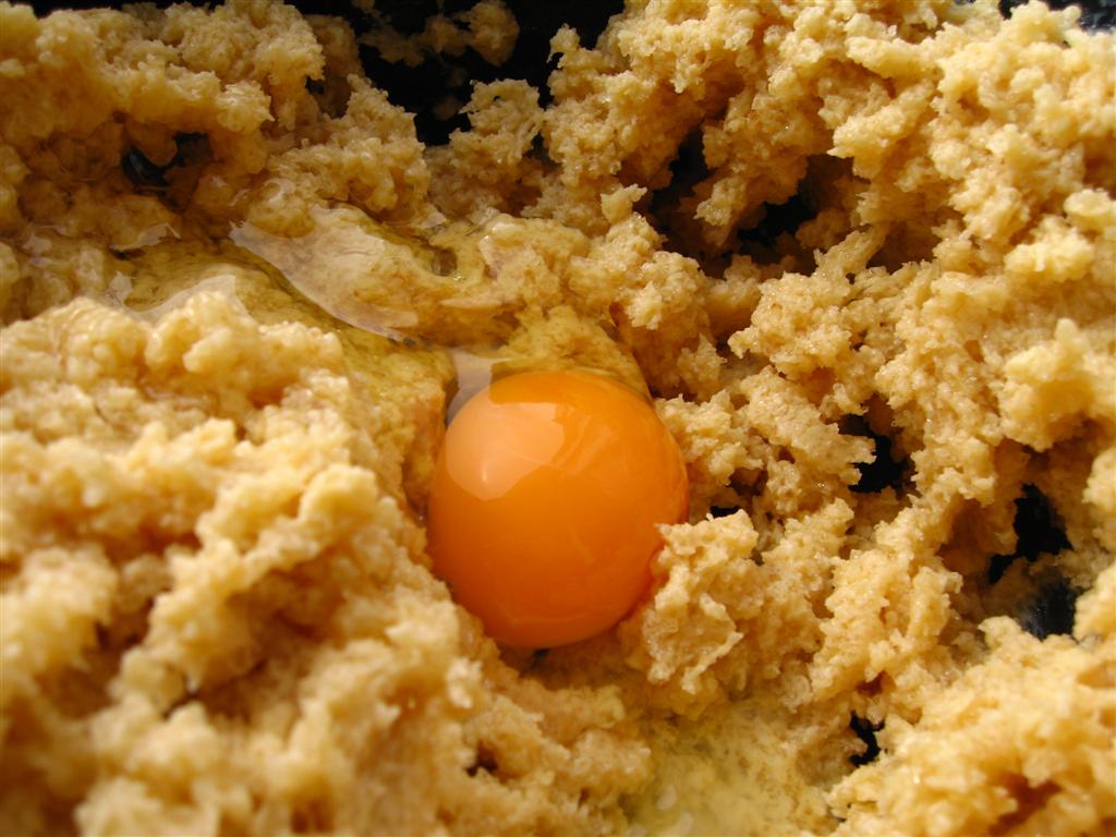apoi am adaugat primul ou, am mixat bine, apoi cel de-al doilea, iar am mixat, apoi al treilea