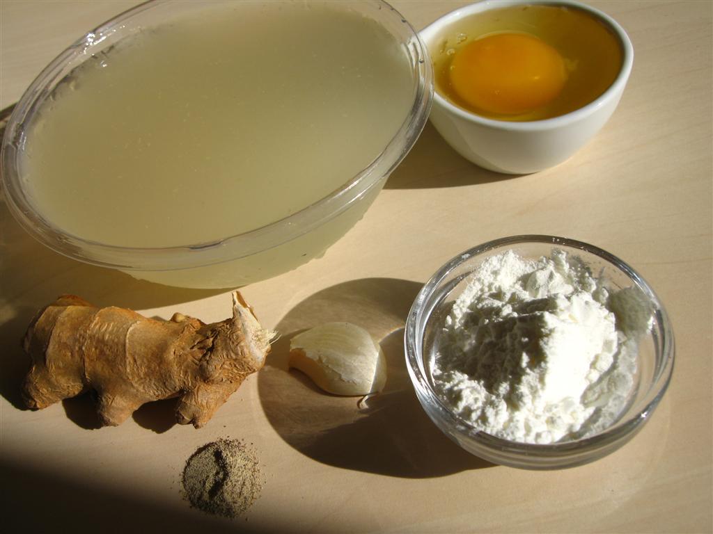 4 cani de supa de pui clara+3 linguri pentru dizolvat amidonul