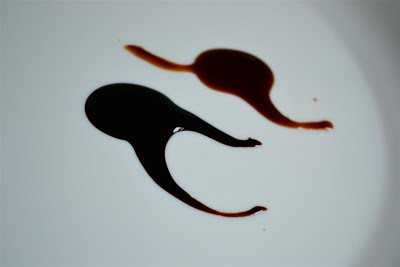 Am pus pe o farfurie cate o picatura din fiecare pentru a observa mai bine diferenta intre ele. Sunt sosuri diferite si nu se inlocuiesc in mancare unul cu celalalt. Sosul dark folosit in locul celui light va colora mult prea mult mancarea, dandu-i un aspect intunecat si neplacut ochiului. In plus, mancarea va capata un gust usor amarui. Daca totusi se intampla sa nu aveti in casa decat sos dark si deloc sos light, il puteti dilua usor cu apa pana la consistenta dorita, dar gustul mancarii nu va mai fi acelasi. Ca sa facem o comparatie mai clara, este precum la noi sucul de tomate si pasta de tomate.