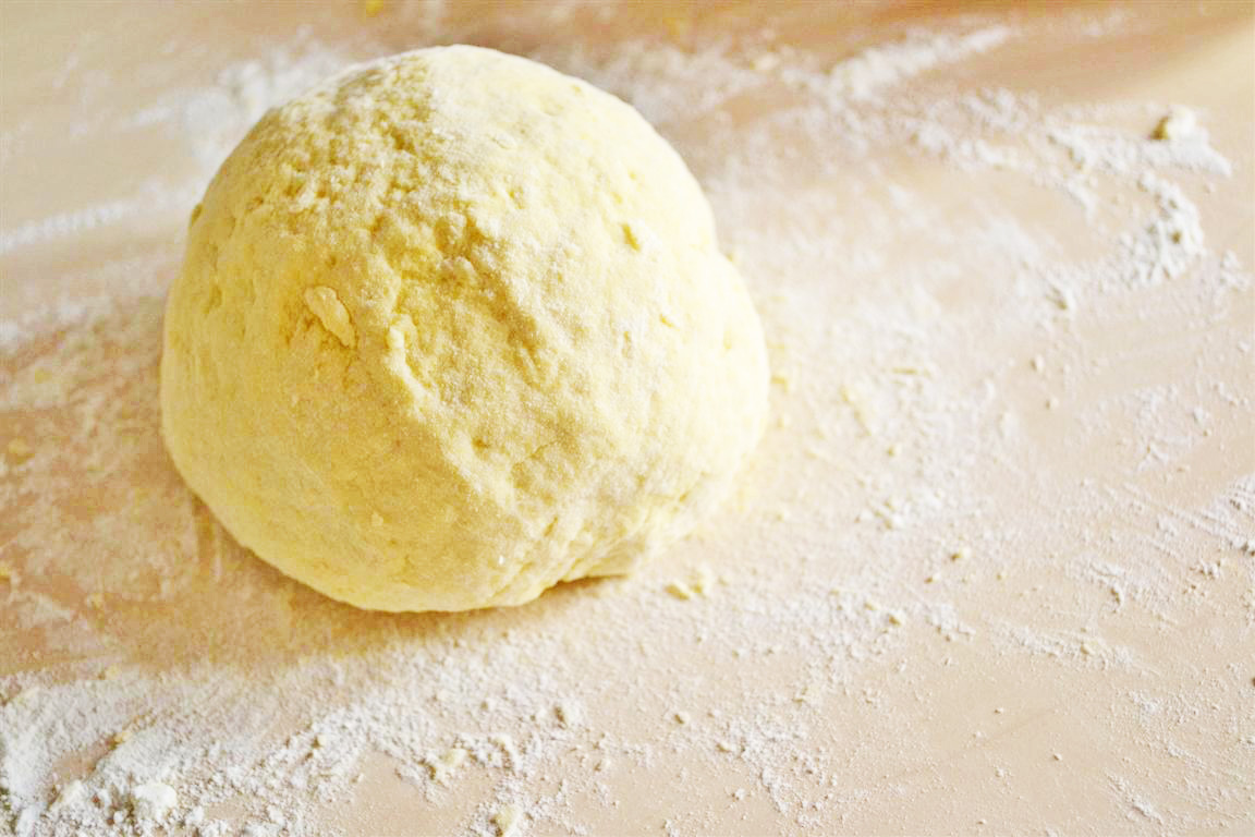 obtinem o biluta de aluat nelipicioasa si usor elastica. O vom lasa sa se odihneasca pe masa de lucru pentru 15 minute, acoperita cu un prosop