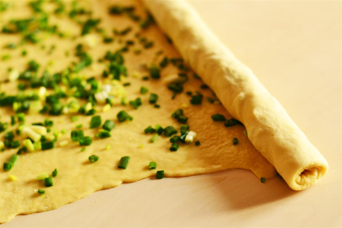 incepem si rulam aluatul pe lungime, avand grija sa il rulam strans