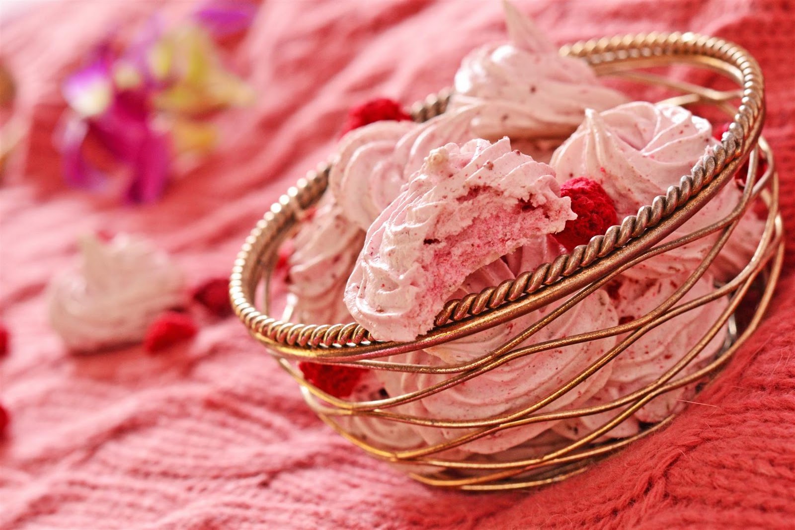 buuun! Si acum ca aveam si zmeurica…ce sa fac mai repede cu ea? Cu inima stransa si mainile tremurande ma apuc sa fac bezele! 🙂 din albusuri! evident! 🙂 Zmeurica asta era pefercta pentru ele, pentru ca le-a si dat aroma placuta si le-a si colorat putin.
