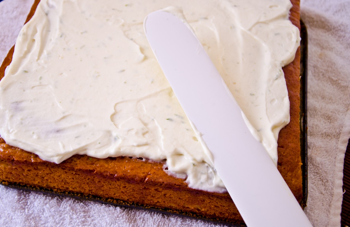 întindeți crema peste blatul însiropat și dați la frigider pentru cel puțin o oră