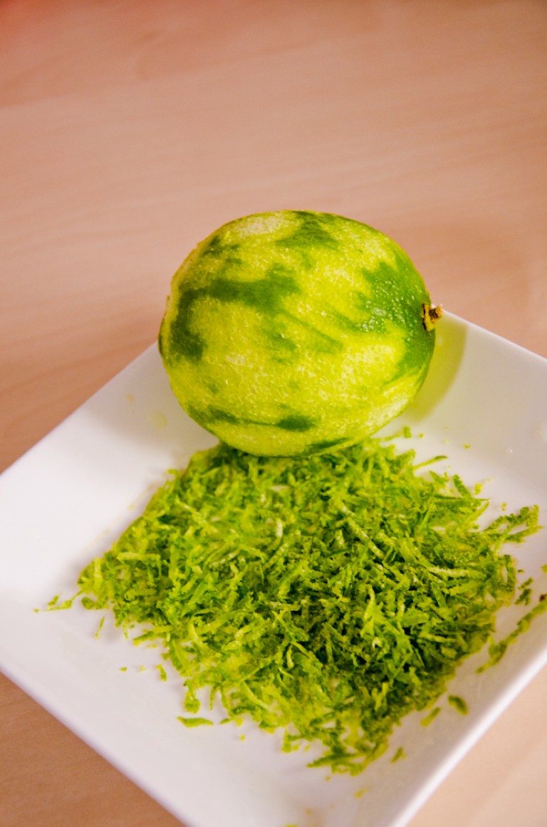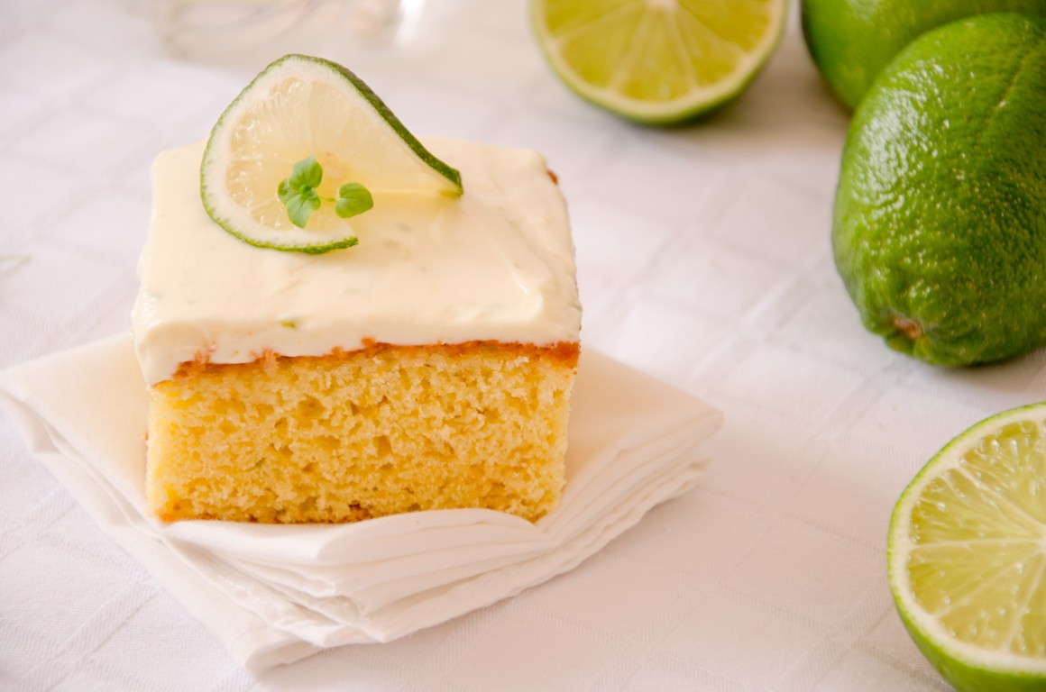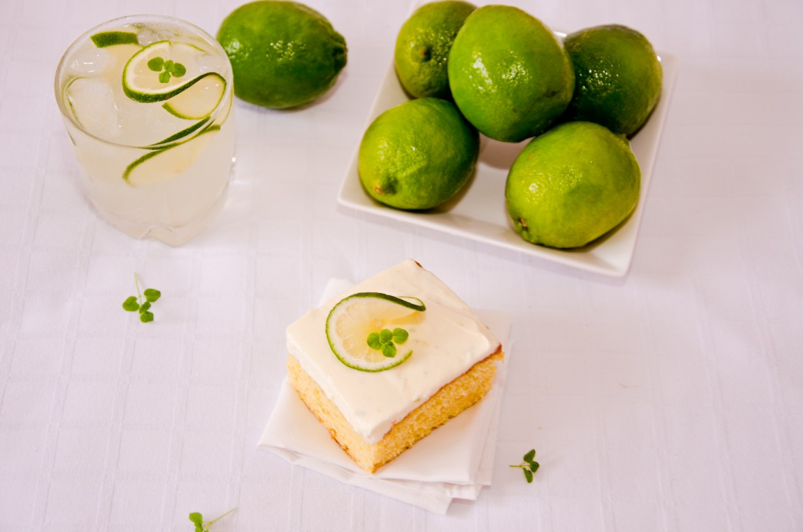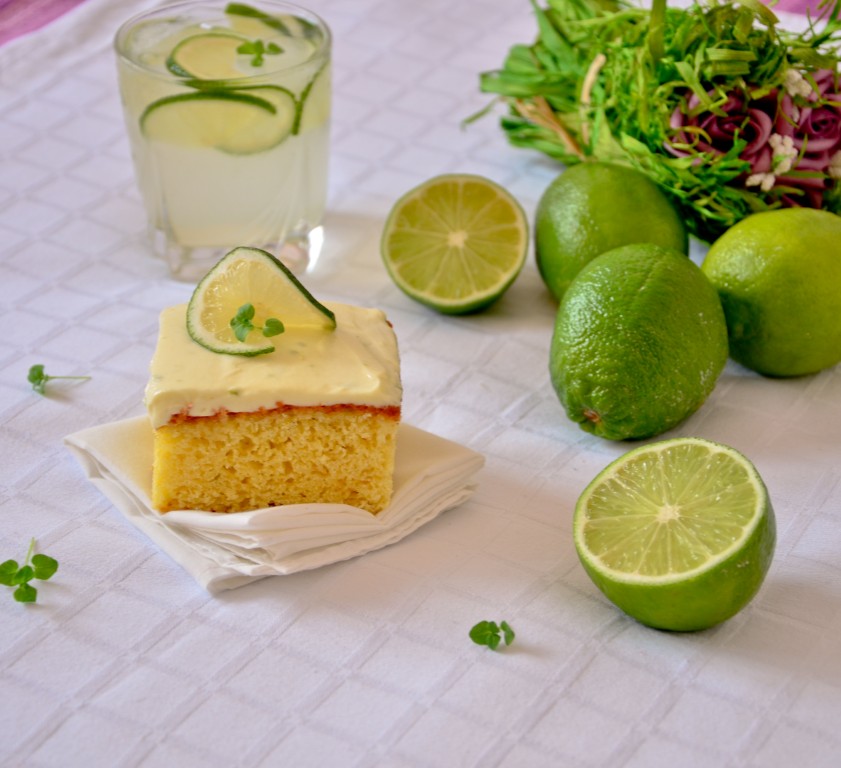 Prima dată am făcut această prăjitură acum vreo 3 luni, când inițial am vrut să fac de fapt o simplă prăjitură cu lămâie. Dar pentru că am găsit la Metro un săculeț întreg cu lâmâi verzi foaaarte frumoase și mari, m-am gândit să schimb un pic datele problemei. Dacă nu găsiți lămâi verzi, nu vă plac sau vi se par prea scumpe, atunci folosiți lămâi galbene, iese la fel de bună prăjitura. Însă, pe mine, lămâile verzi m-au cucerit definitiv! 🙂 Și vă mai spun ceva: dacă vă apucați să faceți prăjitura asta, o să mă țineți minte, ever! 😛 O să vedeți cum din cuptor ies niște arome minunate și îmbietoare, iar la ușă o să vă bată vecinii înnebuniți de miros! :))