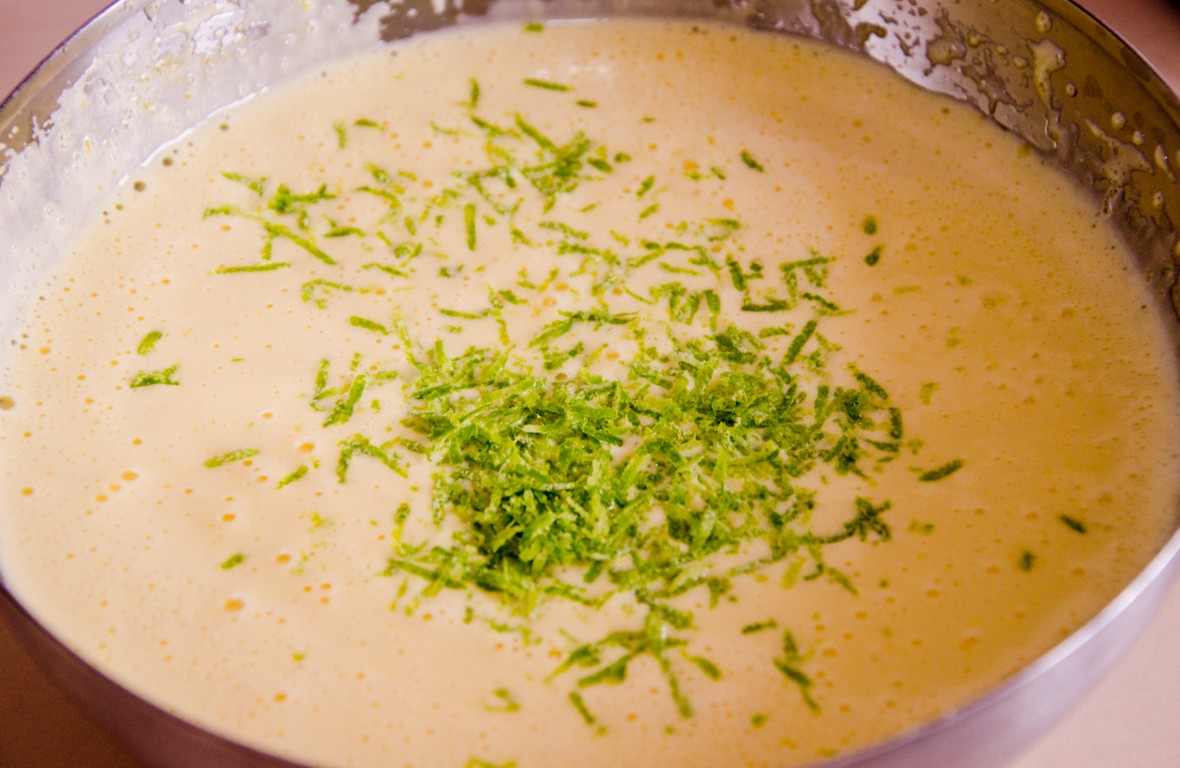 Duă ce s-a răcit compoziția, adăugați coaja de lime și mascarpone, amestecați pentru a obține un deliciu de cremă! 🙂