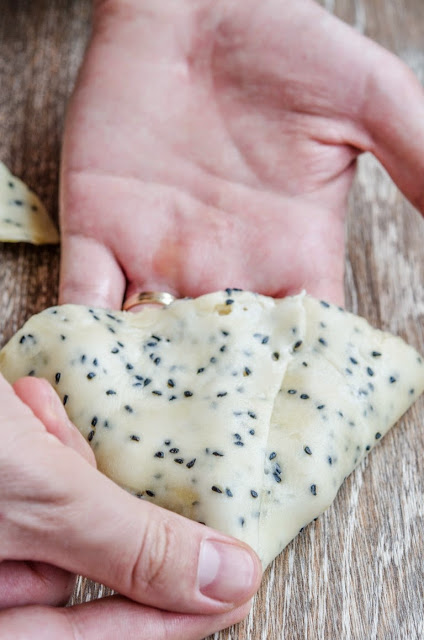 Cu gandul la acele samosa din Thailanda, astazi am pregatit si eu varianta mea. In mod normal umplutura lor este cu cartofi si mazare, insa eu am pregatit-o cu naut si bine am facut. A iesit delicioasa! Iar pentru o varianta mai sanatoasa, eu am copt samosa, nu le-am prajit in baie de ulei, cum se prepara in mod traditional.