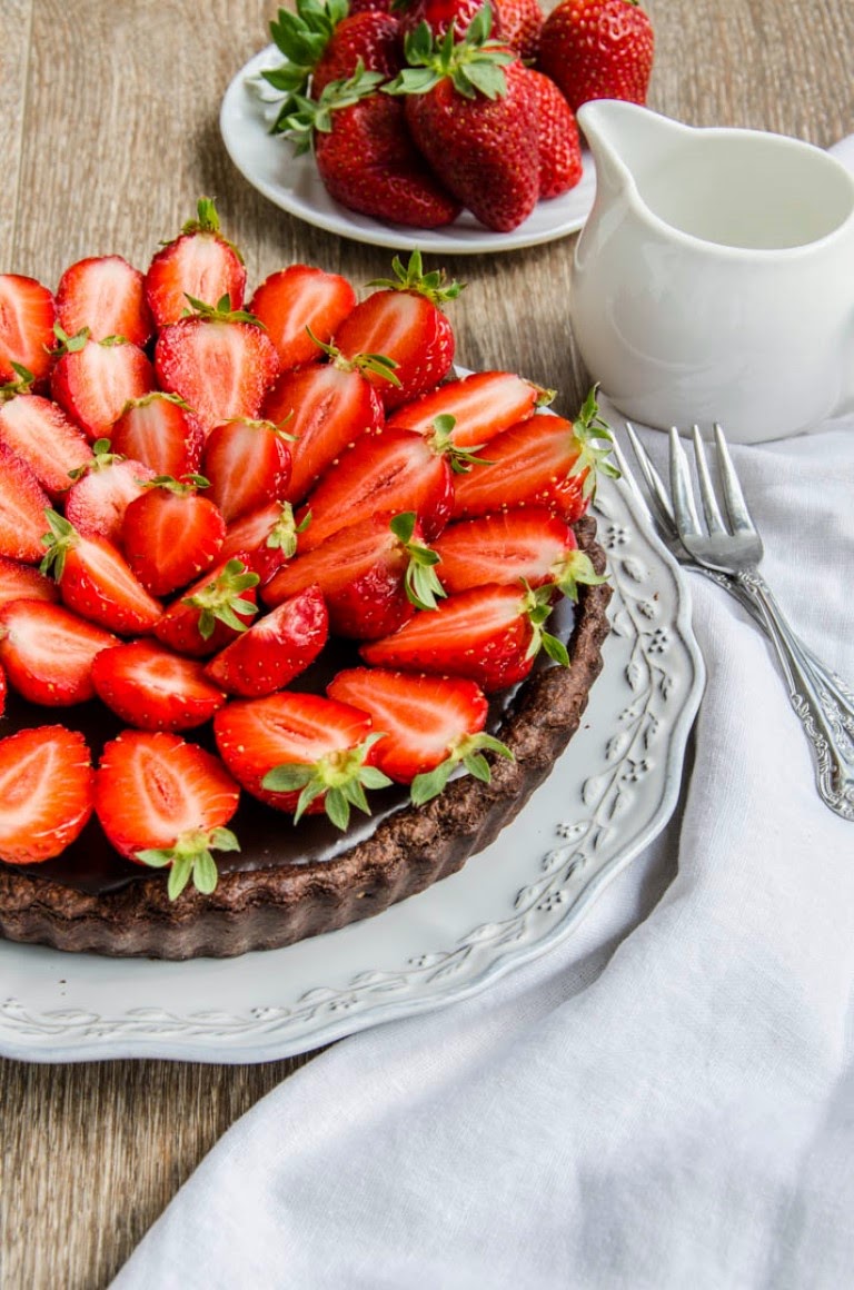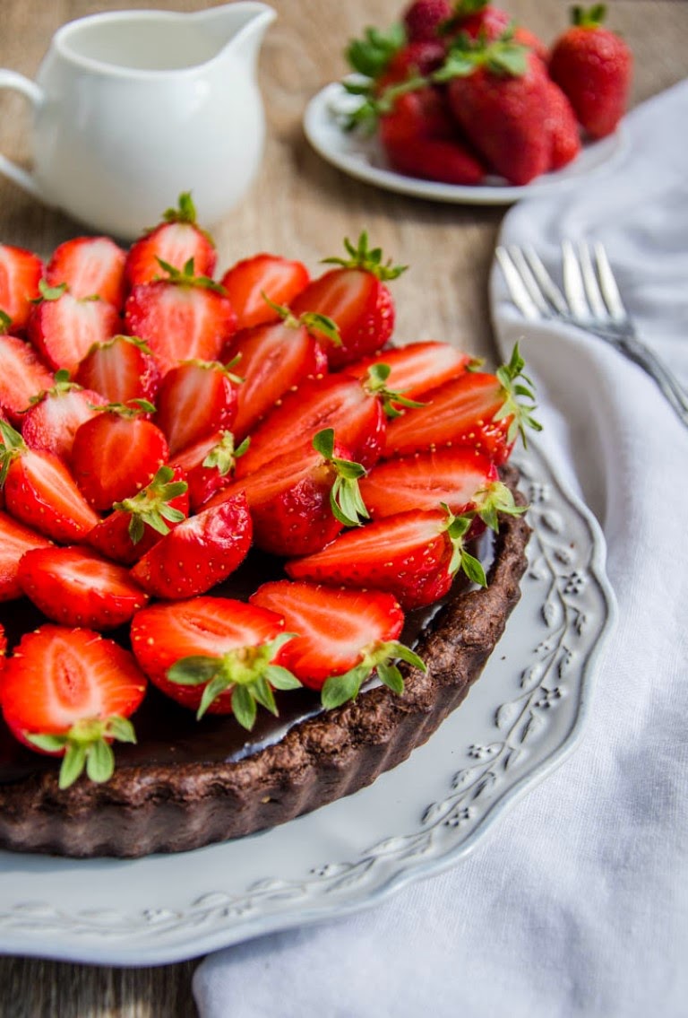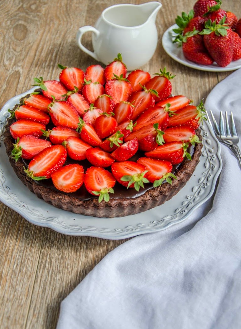 Fara indoiala, este una dintre cele mai bune tarte pe care le-am facut si mancat vreodata! Desi, va ziceam eu ca nu prea imi place ciocolata, capsunele astea au facut din aceasta tarta ceva cu totul special! Adica stiti voi, capsune si ciocolata sunt o combinatie care nu da gres nicioidata.