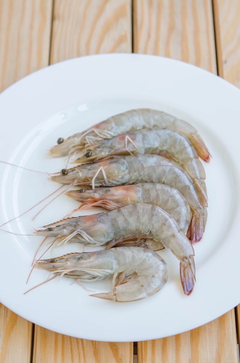 Curatam crevetii de cap si de crusta, avand grija sa lasam cozile intregi. Dupa ce am indepartat capul crevetilor, avem grija sa scoatem si intestinul, acel firisor negru-gri care se afla catre “spinarea” crevetilor. Dupa cum vedeti si in poze, fara codita aceea, ei nu arata asa de apetisant, mai ales dupa preparare. Asa ca fiti siguri ca ii lasati cu codita.