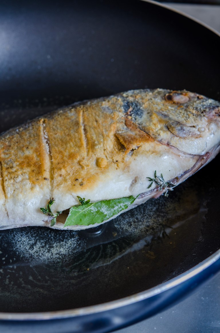 Intr-o tigaie mare incingeti uleiul si puneti dorada la prajit. Prajiti usor la foc mediu pana capata o culoare aurie, in jur de 3-4 minute. Intoarceti pestele si pe cealalta parte si prajiti. Scoateti pestele pe o farfurie si pastrati la cald.