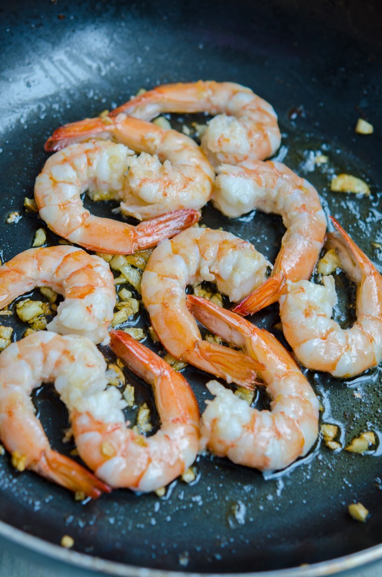 Spalam bine crevetii, ii punem pe un servet de bucatarie si ii zvantam bine.