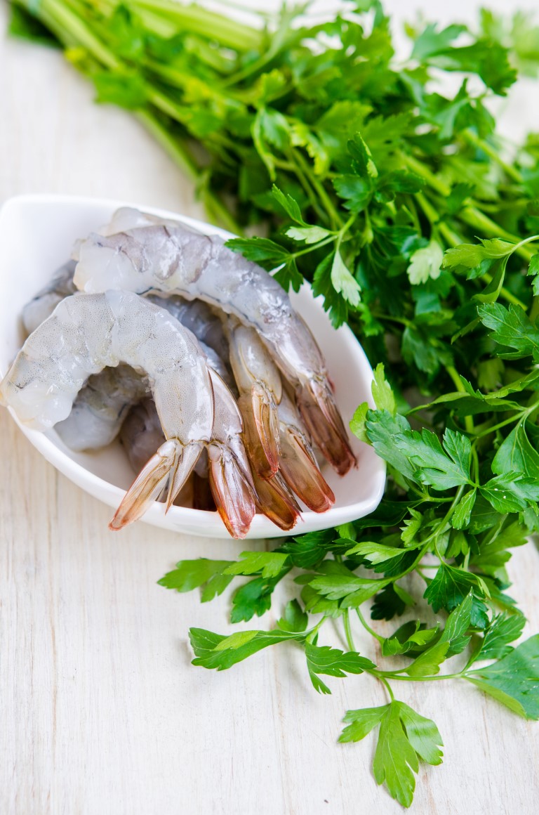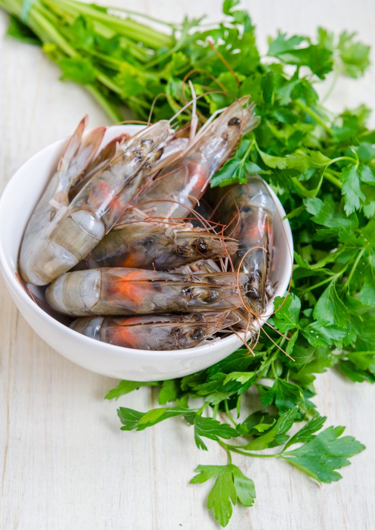 Potrivim de sare si piper, tocam patrunjelul si il adaugam peste creveti.