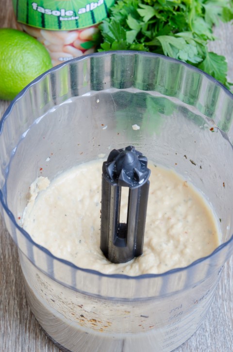 Porniti blenderul si pasati fasolea pana ce obtineti o crema fina. In functie de preferinta, puteti face pasta mai mult sau mai putin cremoasa, adaugand lichid sau scazand cantitatea.