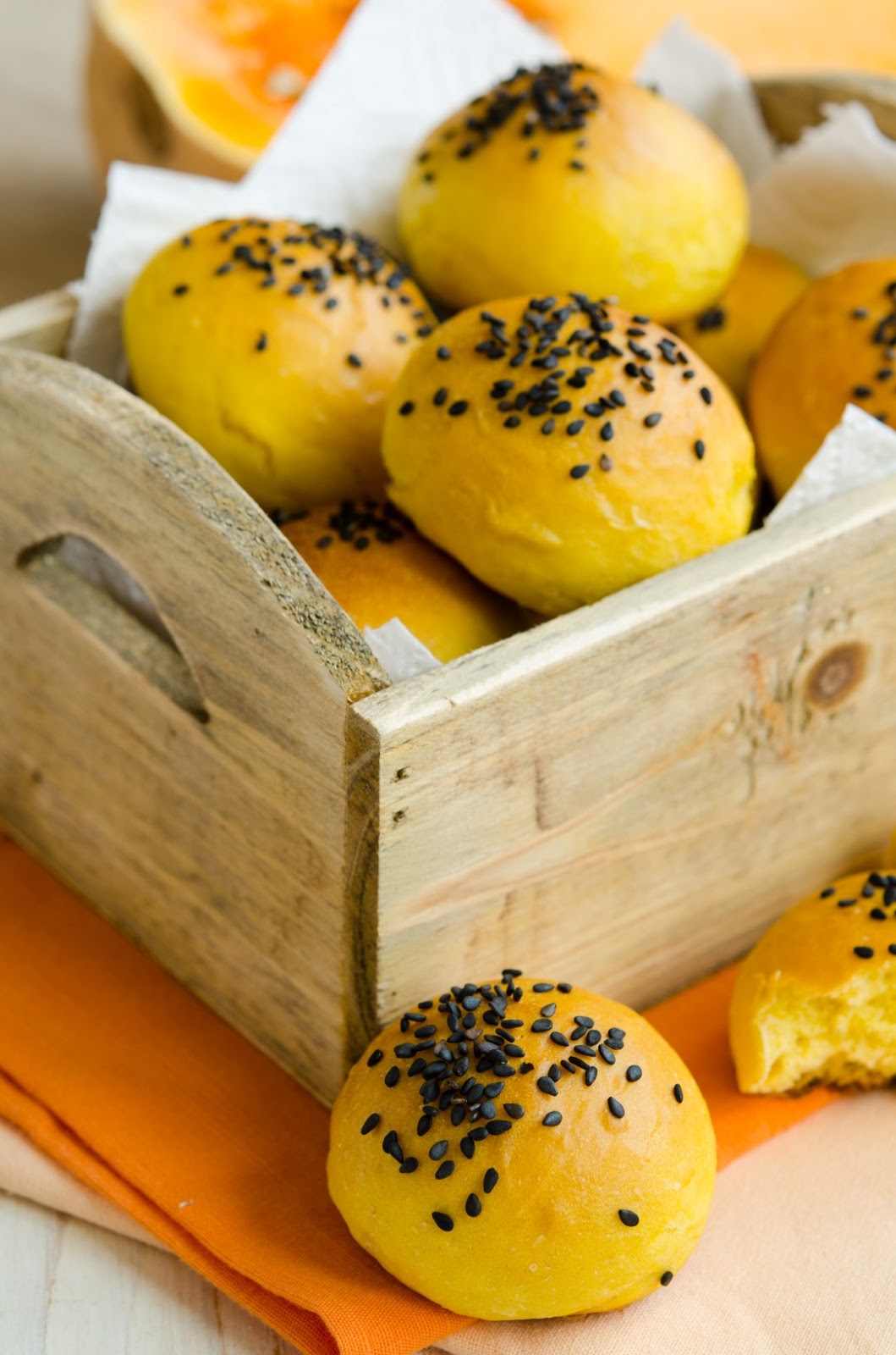 Zilele trecute eu m-am jucat cu niste dovleac si am pregatit aceste chifle delicioase! Pufoase si bune, bune! Sotul meu, care nu este iubitor de dovleac, a gustat din aceste chifle si a zis ca au textura si aroma de cozonac! :). Nu si-a putut da seama ca au si dovleac in continut, asa ca l-am lasat sa se delecteze cu ele in continuare :).
