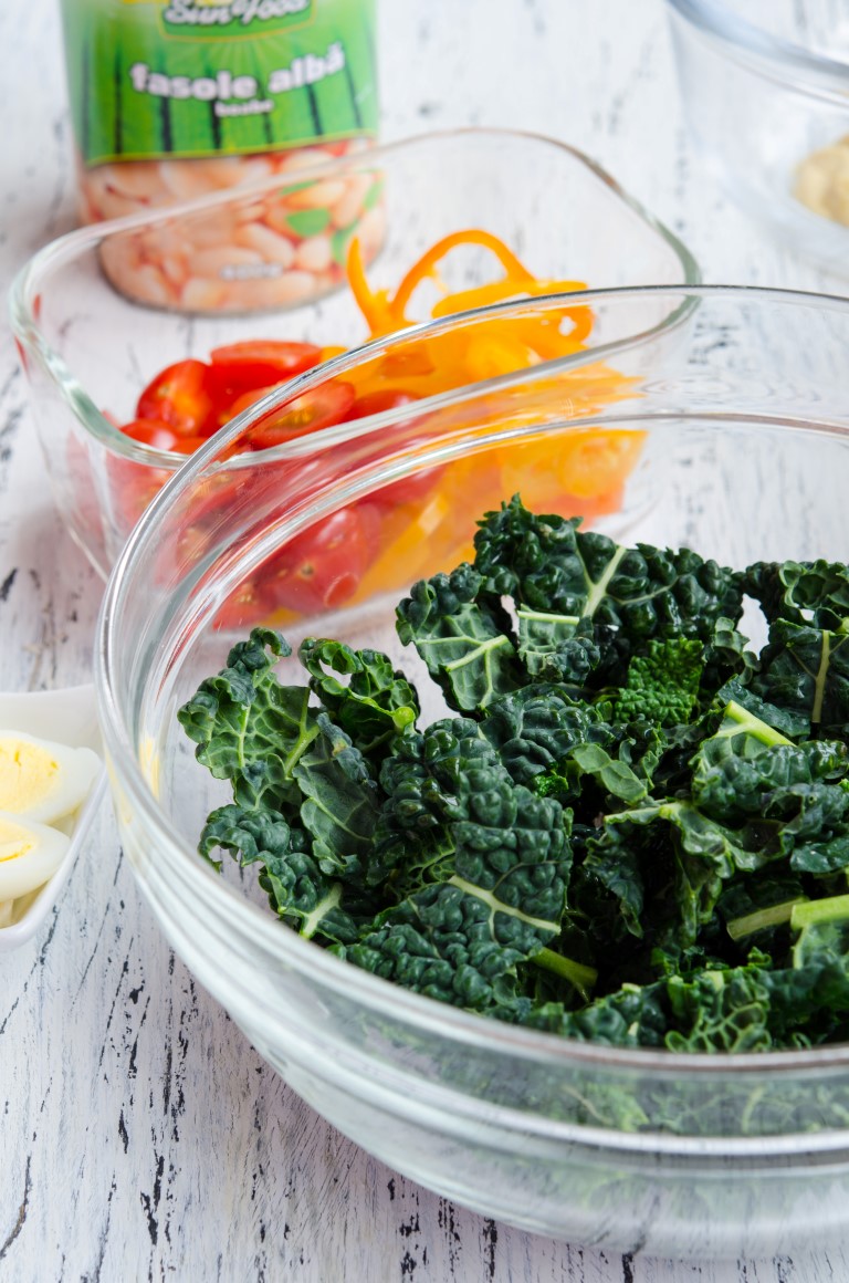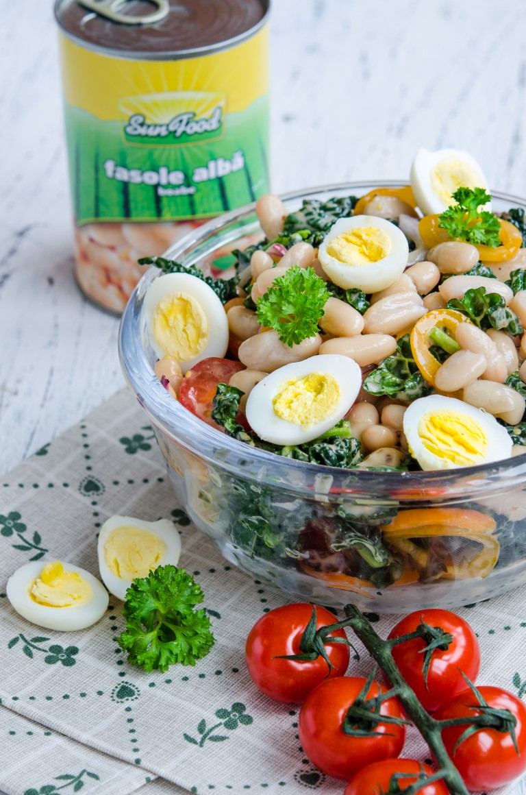 In ultima perioada am simtit nevoia sa mananc mancaruri calde si mai consistente, frigul de afara si-a spus cuvantul, asta este clar. Cu toate acestea, in unele seri mi-am preparat si salate consistente, dar delicioase, fara a contine prea multe ingrediente. Un astfel de exemplu a fost salata cu fasole de la Sun Food si minunata kale. Mi-a placut atat de mult, incat am repetat-o zilele trecute si am pozat-o ca sa va arat si voua cat de buna este! 🙂
