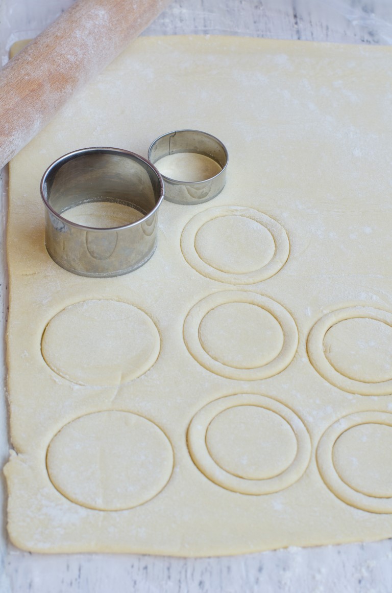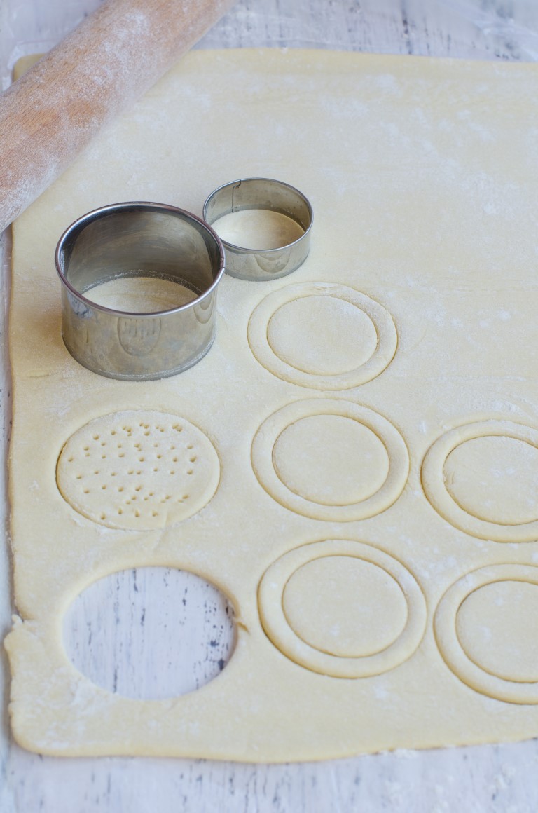 Scoateti aluatul de la frigider. Cu ajutorul unei furculite intepati din loc in loc cercurile mari
