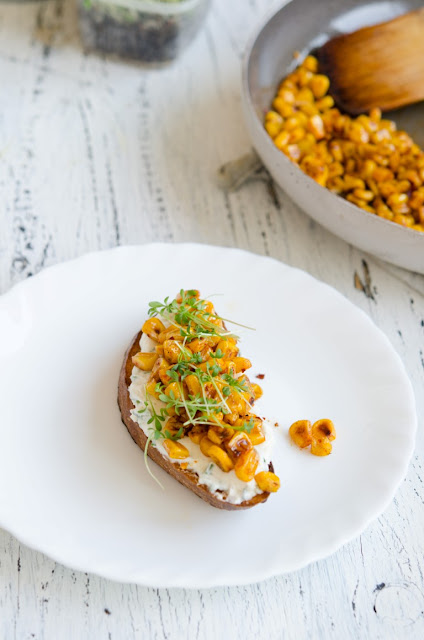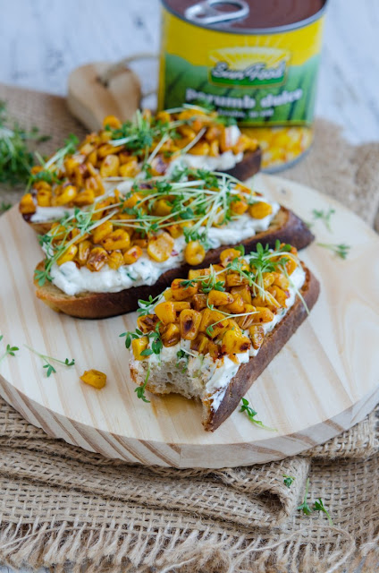 Nu ca nu mi-ar placea vara, dimpotriva, ba chiar o iubesc! Dar cand afara temperaturile ajung la cote fulminante, sincer…gandul la bucatarie ma face sa fug cat mai departe de ea! :)). Cu toate acestea, pentru o gustare rapida parca as aprinde putiiin de tot aragazul :). Asa ca de multe ori pregatesc bruschette pe gratar sau crostini. Zilele trecute mi-a venit ideea sa pregatesc aceste gustarele cu porumb picant si o crema de branza racoritoare ca sa mai ia din iuteala ardeiului. Nu am folosit porumb proaspat ca nu aveam ci am folosit porumbul dulce de la SunFood si tare bun a mai fost!