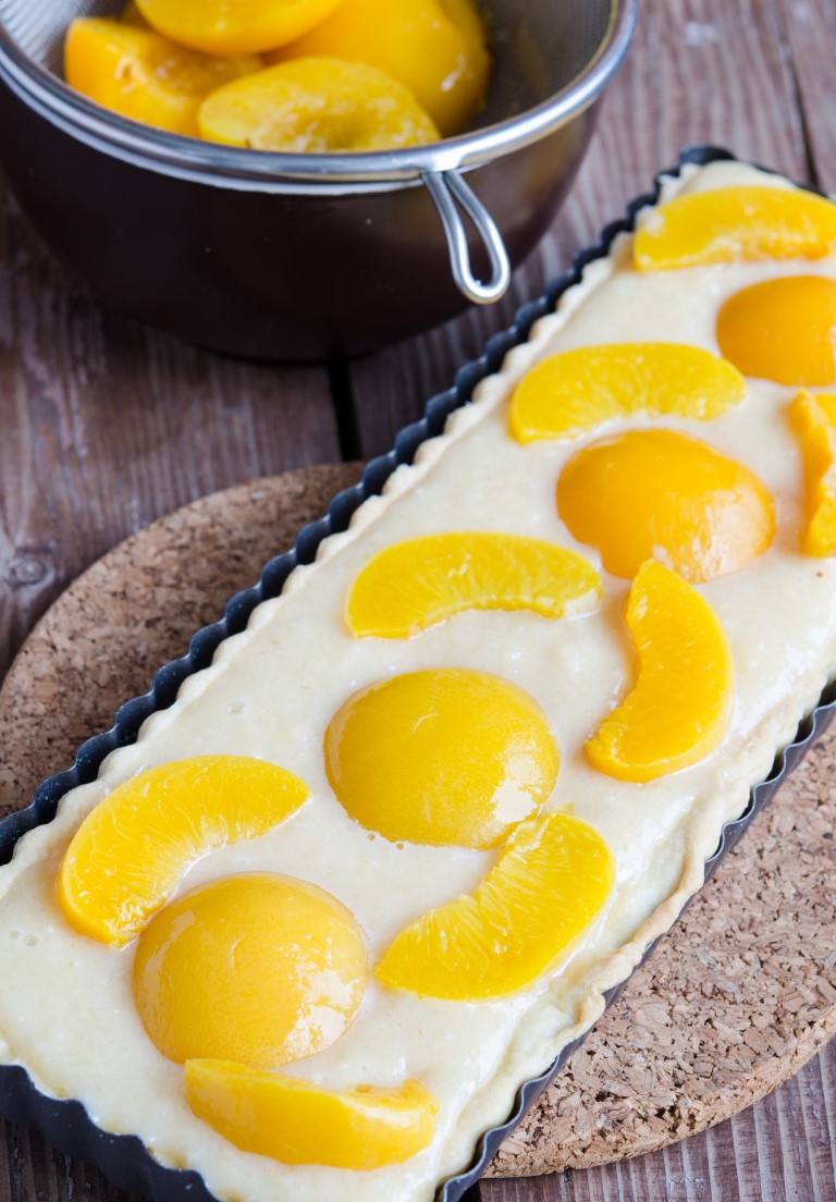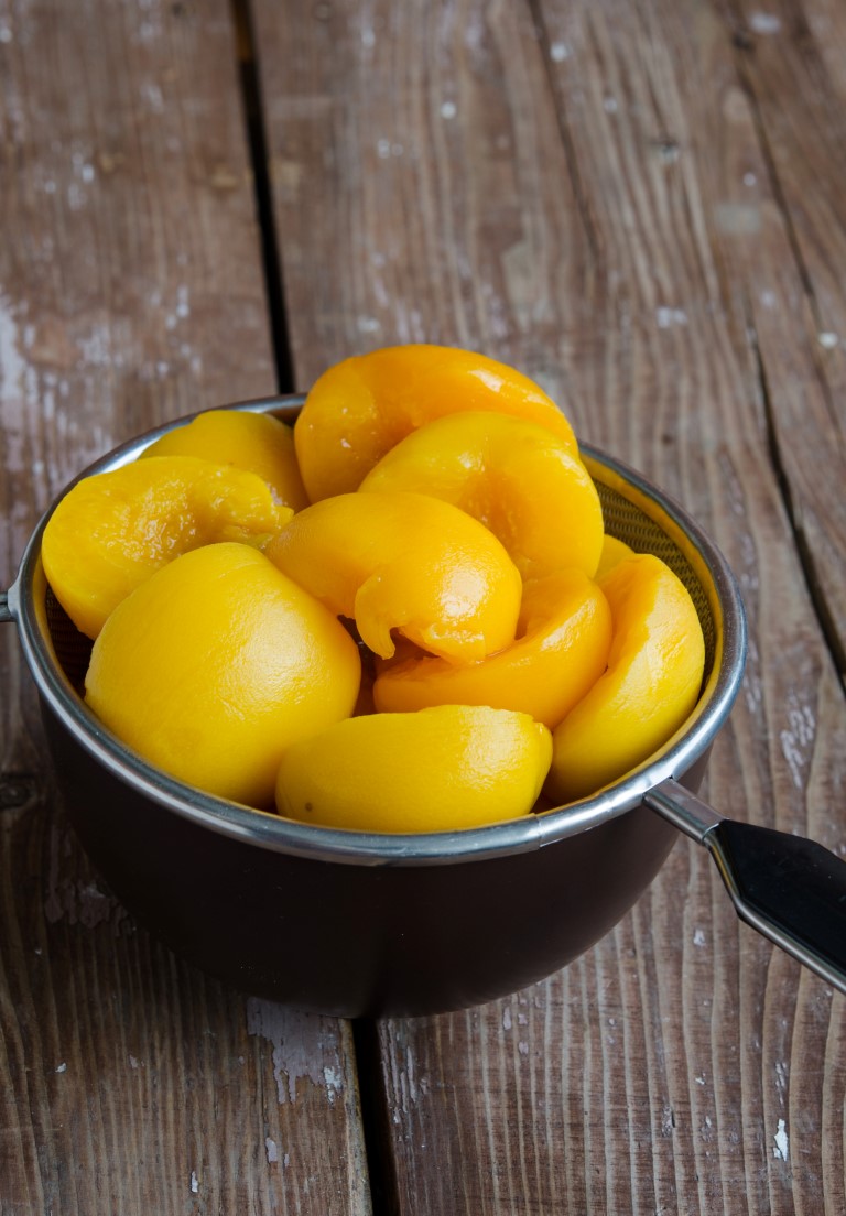 Desfaceti conserva de compot de piersici, scurgeti foarte bine piersicile si stergeti-le cu un prosop de hartie.