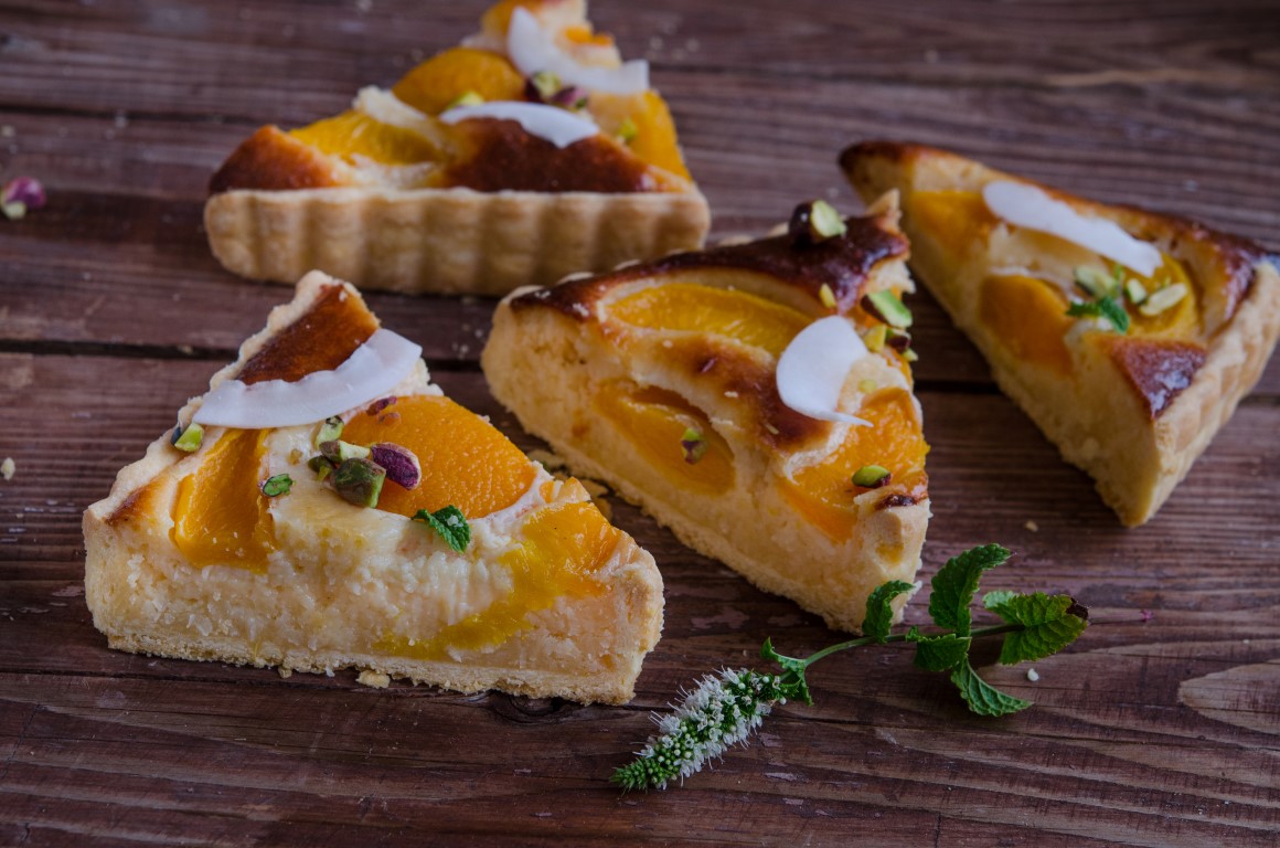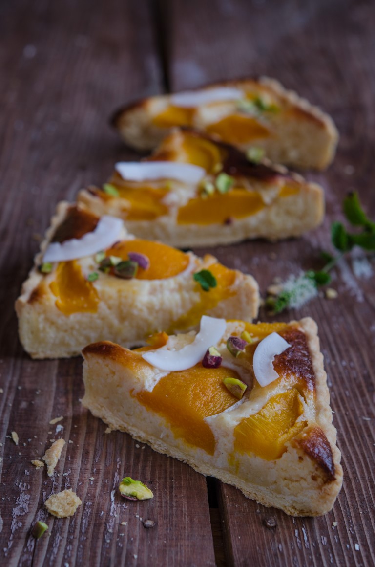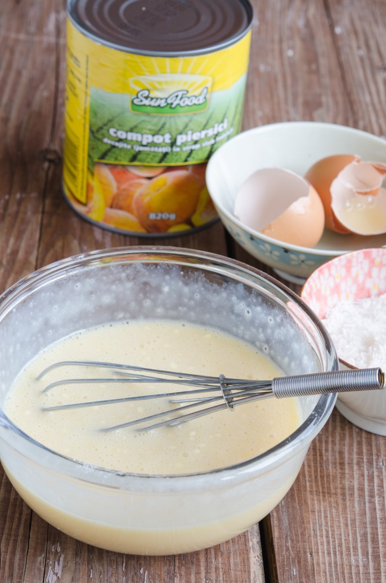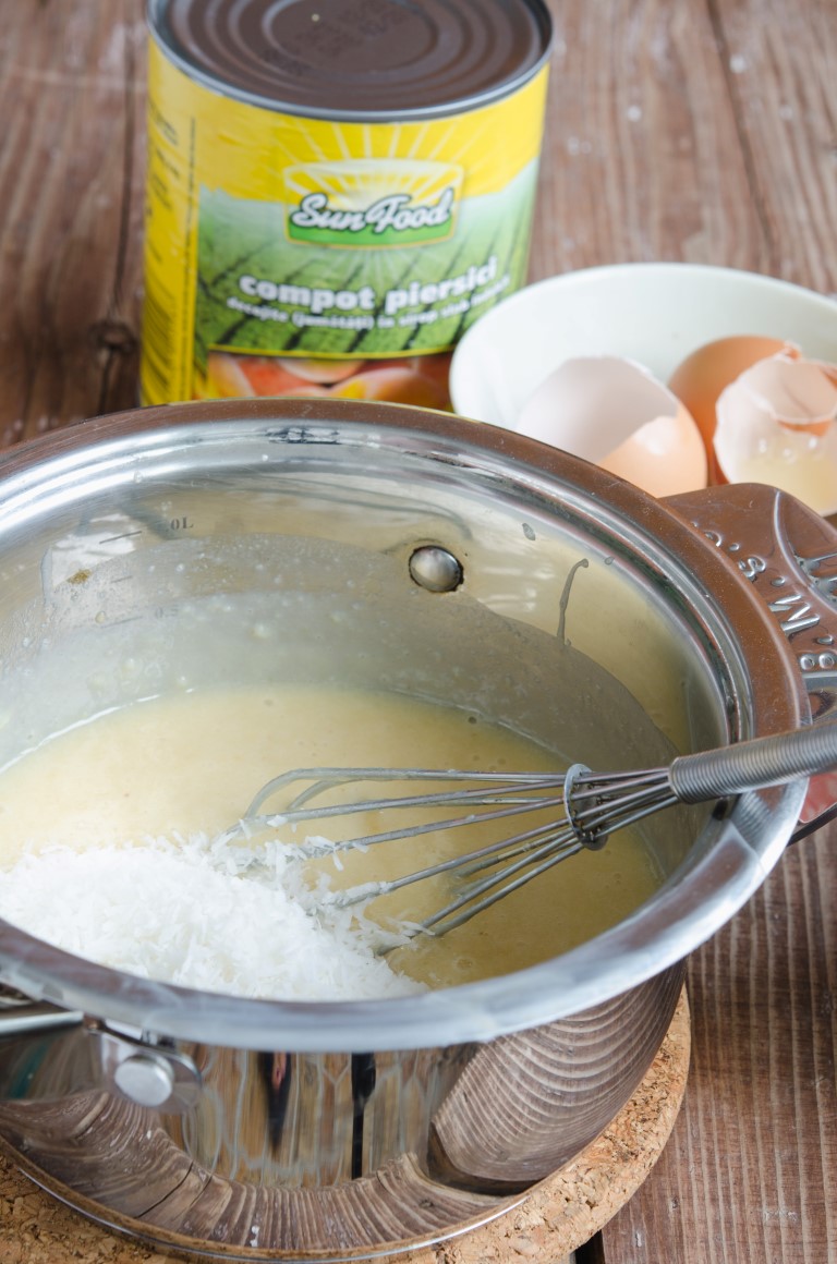 Este delicioasa! Umplutura este usor densa insa tare aromata de la piersici si nuca de cocos.