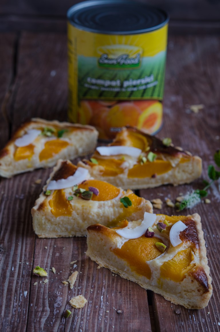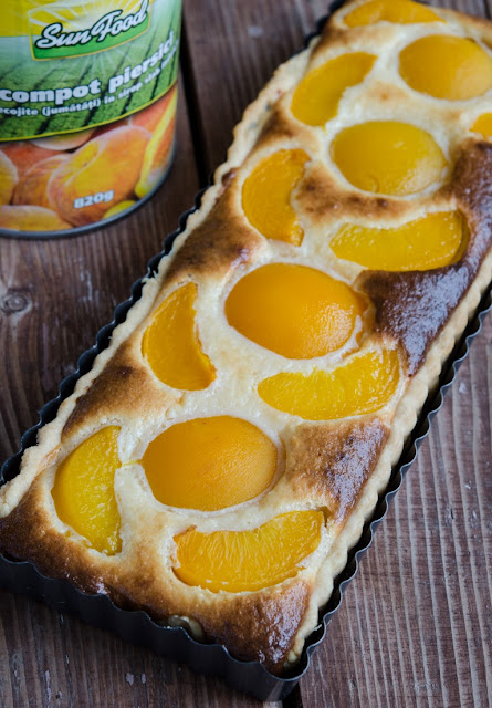 Serile trecute stand pe balcon am simtit racoarea toamnei si atunci mi-am adus aminte de tarte. Asa ca nu am stat pe ganduri si am preparat o tarta dulce, mai rustica si mai satioasa, insa cu piersici de la SunFood ca sa imi aduca aminte totusi de vara :).