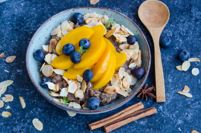 Terci de ovaz cu piersici este o reteta pe care o fac des in serile friguroase de iarna. Il servesc cald pentru ca imi place tare mult textura lui. Uneori adaug diferite tipuri de nuci prajite pentru un gust si mai bun si o textura usor crocanta. Ceea ce imi place tare mult la aceasta reteta este faptul ca pot sa ma joc mai mult cu aromele si texturile, in sensul ca pot adauga vanilie sau scortisoara, iar pe deasupra diferite tipuri de fructe proaspete sau usor posate. Uneori adaug nuca de cocos, fistic sau bucatele de ciocolata. La capitolul fructe proaspete, adesea adaug afine sau mere sau portocale, dar uneori adaug si fructe din compot. Pentru o culoare placuta si pentru un gust care imi aduce aminte de vara, astazi am optat pentru piersici din compot de la Sun Food.