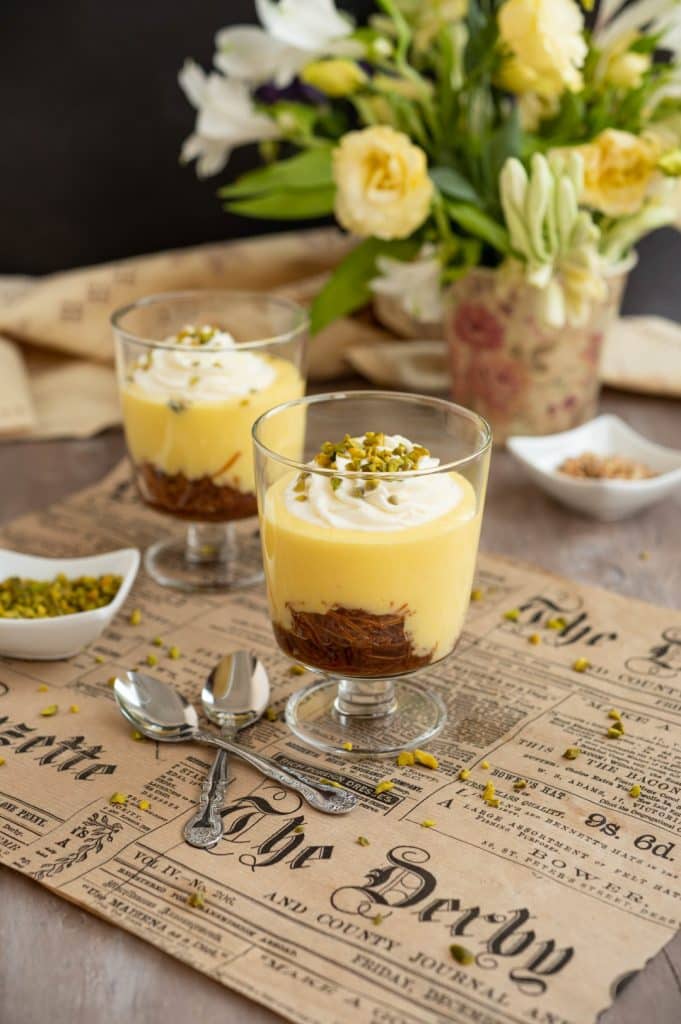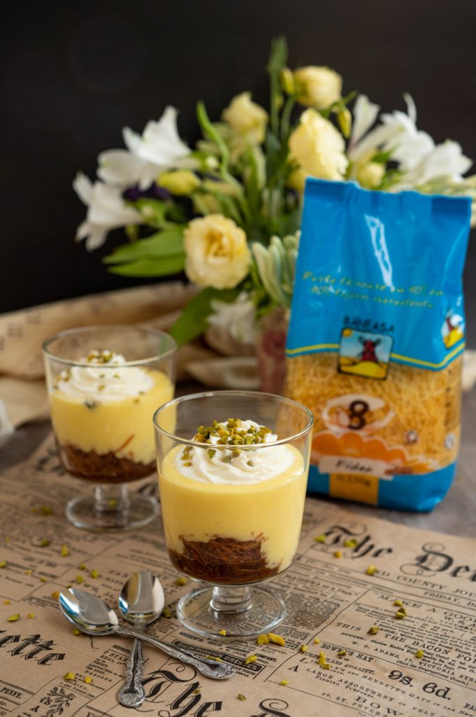 Astazi am decis sa aduc acest desert la un alt nivel si sa il pregatesc pe foc, ci nu in cuptor. Si ca totul sa fie si mai simplu, am optat pentru kataif in pahare individuale, astfel incat sa fie si mai elegante. Au rezultat niste pahare dulci de toata frumusetea!