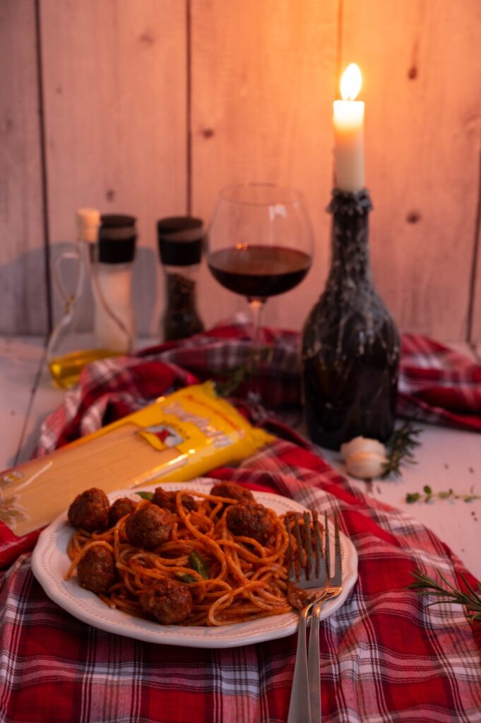 Si acum o sa ma intrebati ce legatura are iubirea cu pastele cu chiftele si sos? Mai stiti desenele animate cu Doamna si vagabondul? Mereu imi aduc aminte cu drag de imaginile in care cei doi catei draguti merg la restaurant si mananca paste 😊. Asa ca astazi mi-am dorit sa recreez nu doar pastele din desenele animate, dar si ambientul din restaurant! 😊