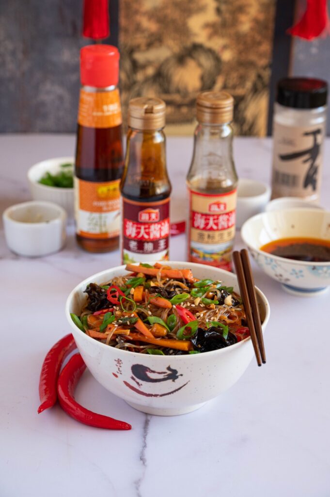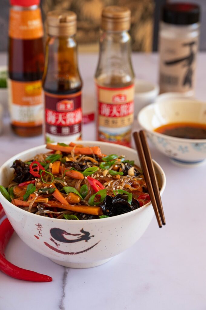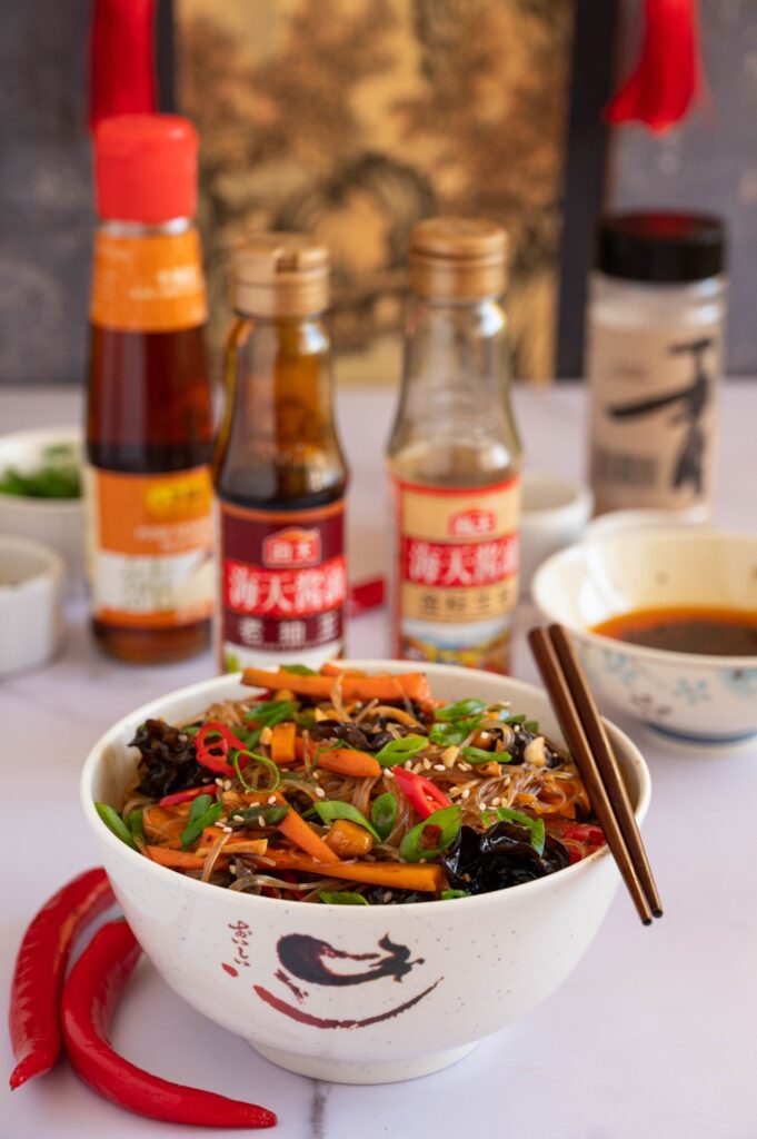 Salata rece de taitei, chinezeasca plina de arome si perfecta pentru canicula! Fara gatire (doar cu apa fiarta), fara gluten, vegana!