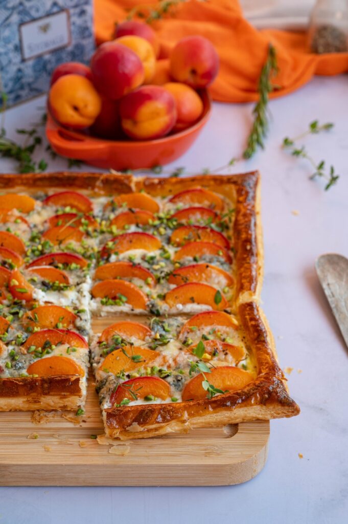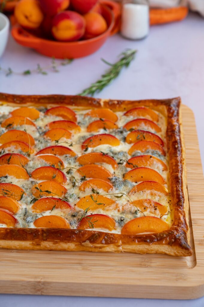 Tarta cu caise si gorgonzola. O tarta rapida cu foietaj, caise proaspete si gorgonzola. O explozie de arome!