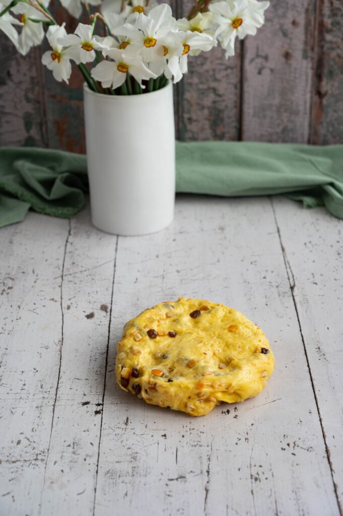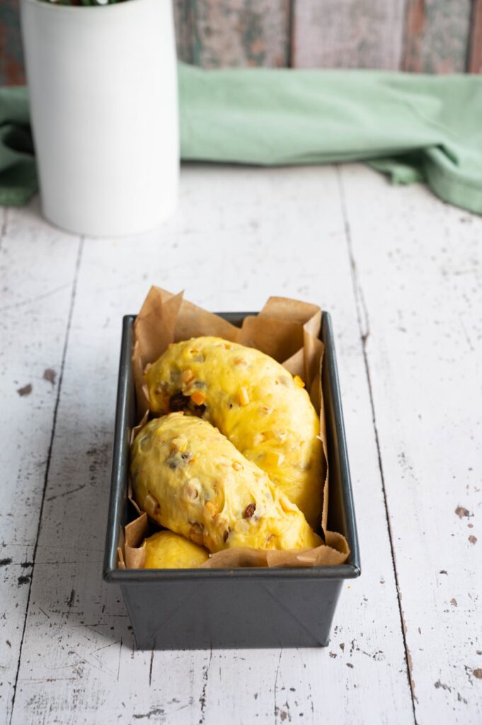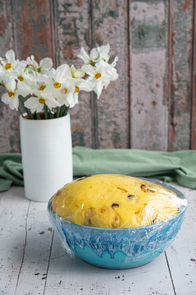 Puteti opta si pentru dospitul la rece. In acest caz, puneti aluatul la frigider imediat ce ati incorporat fructele. Lasati aluatul la frigider pentru 7-8 ore, maxim 10 ore!