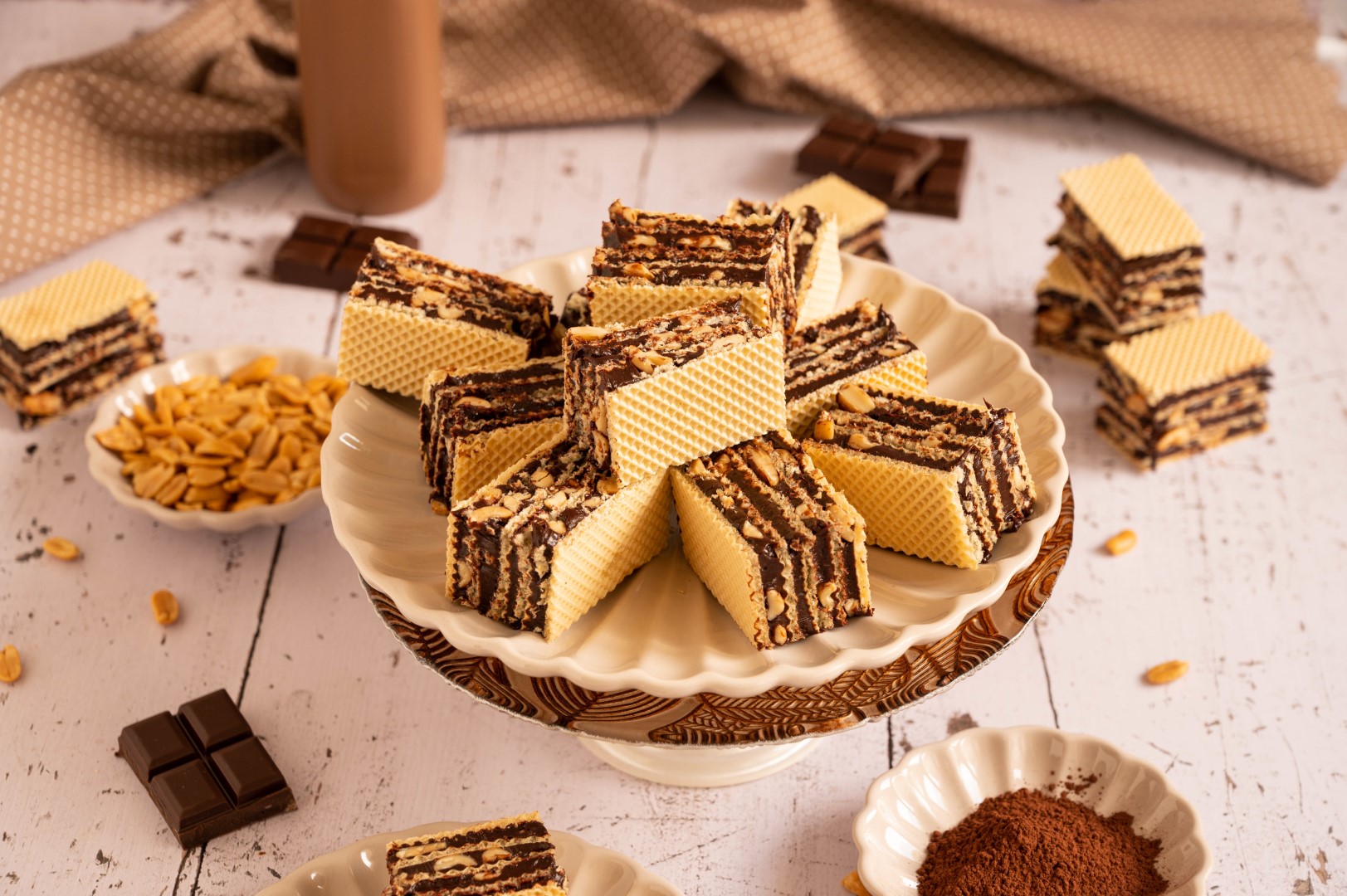Napolitane cu ciocolata si arahide crocante si delicioase, cu ciocolata de casa. Se pregatesc foarte usor si reprezinta un desert superb bun de impartit cu cei dragi!